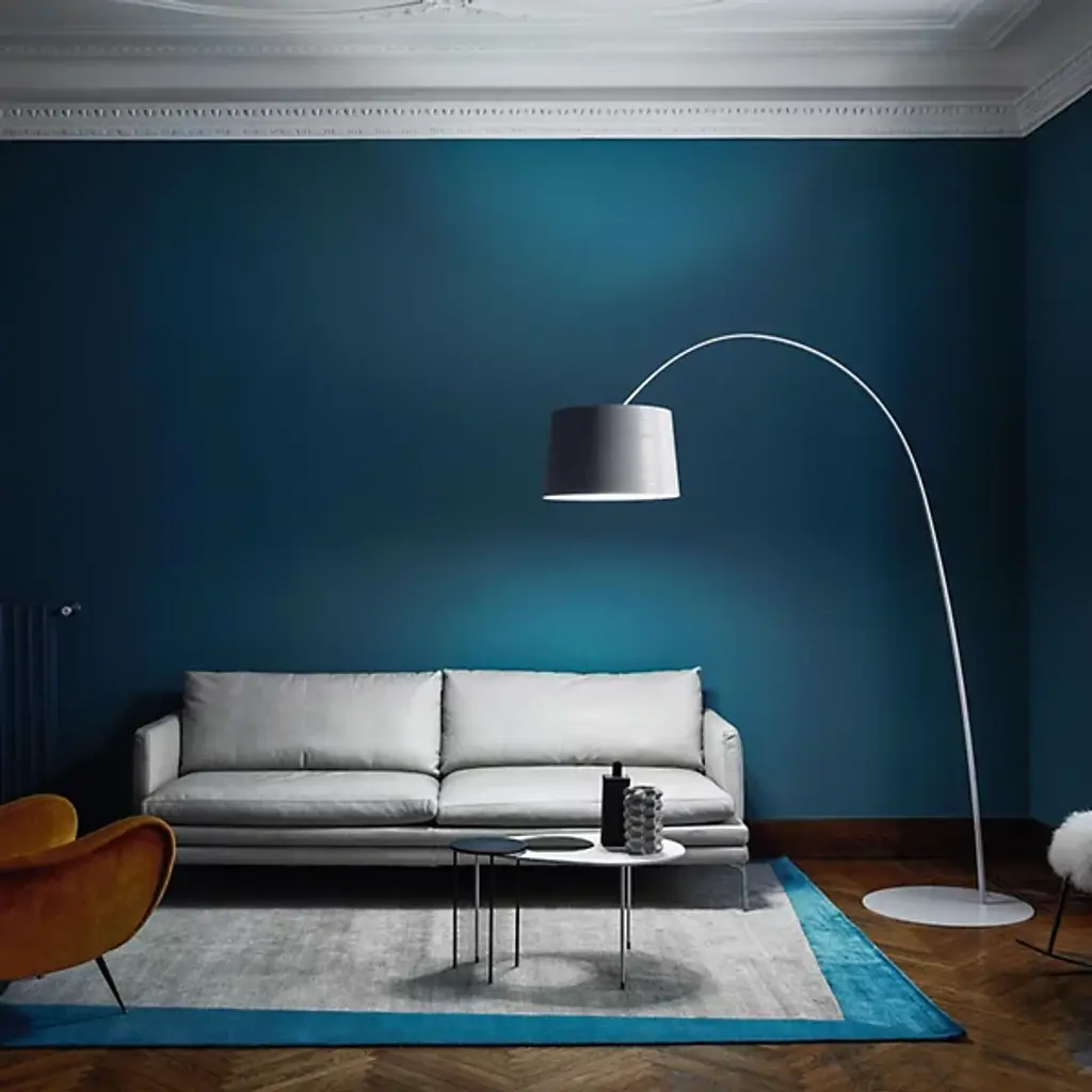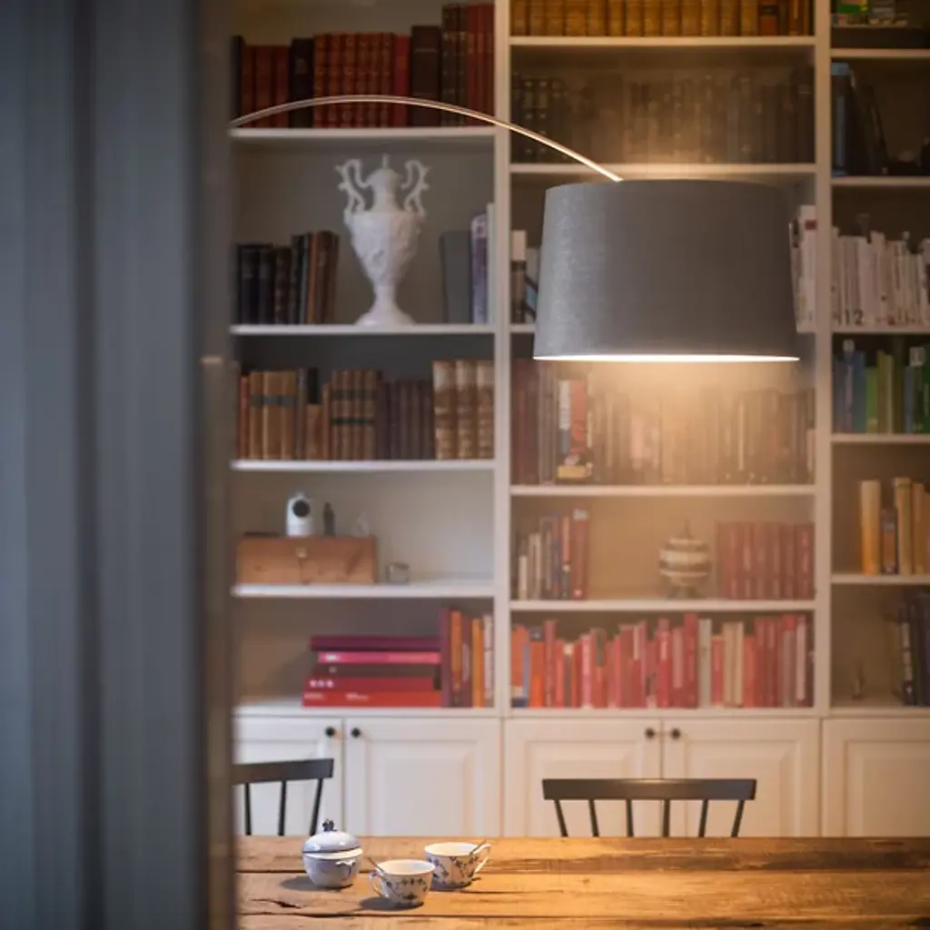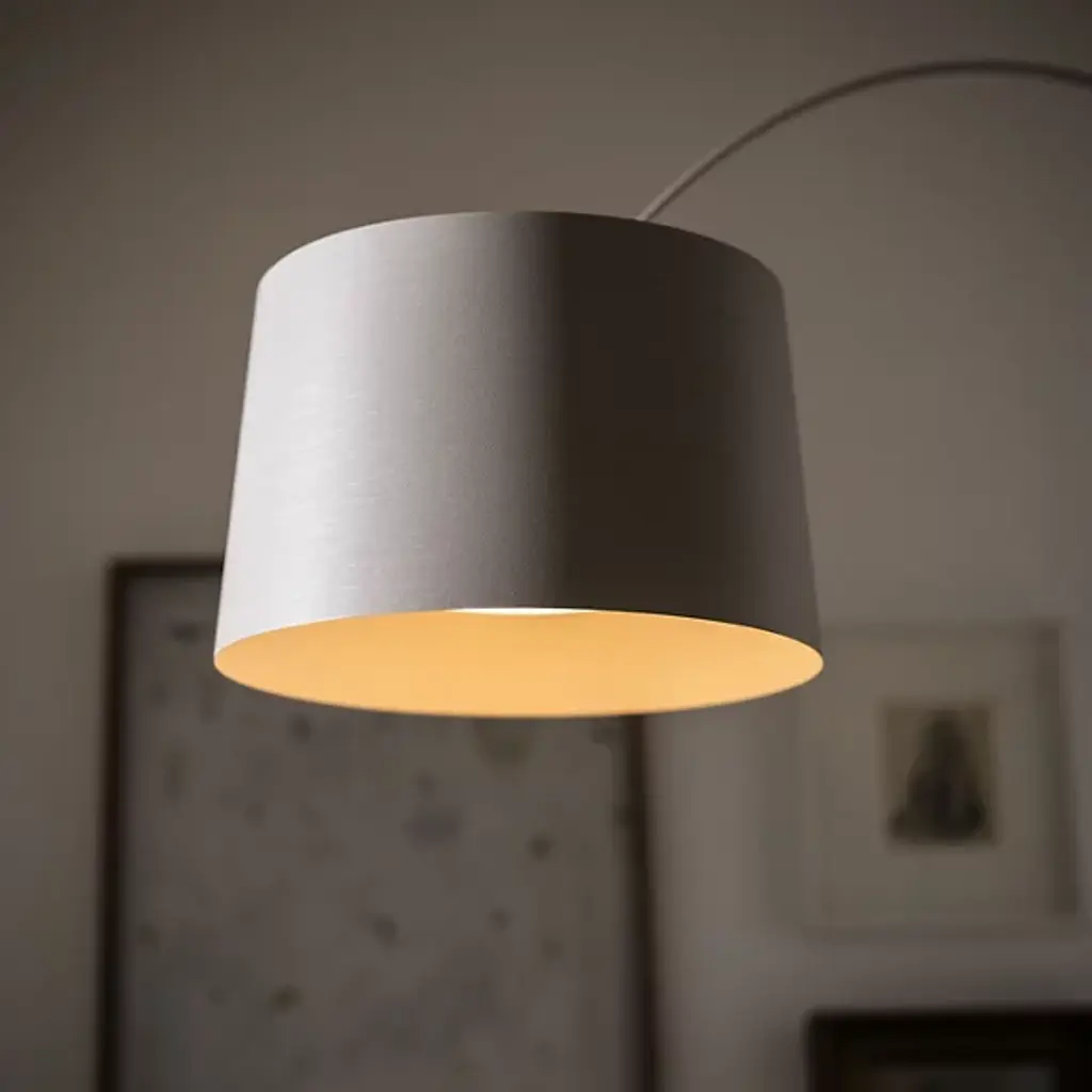 The Foscarini Twiggy Arc Floor Lamp is a graceful statement of structural elasticity and material discovery. Made from a fiberglass composite material similar to fishing rods, the stem is able to withstand heavy tension and bounce back to the original form without permanently stretching. By adding and removing the provided counterweights to the drum shade, the height of the arc can be adjusted to preference. The playful design casts a comforting light below and above the fixture through prismatic diffusers, completely shielding the light source for a pleasing lighting experience.
