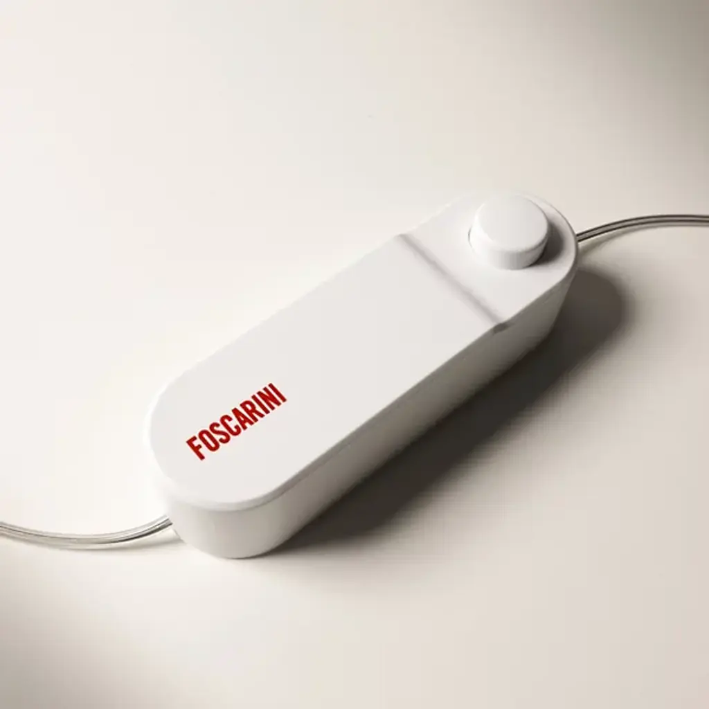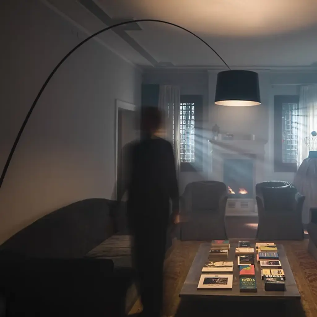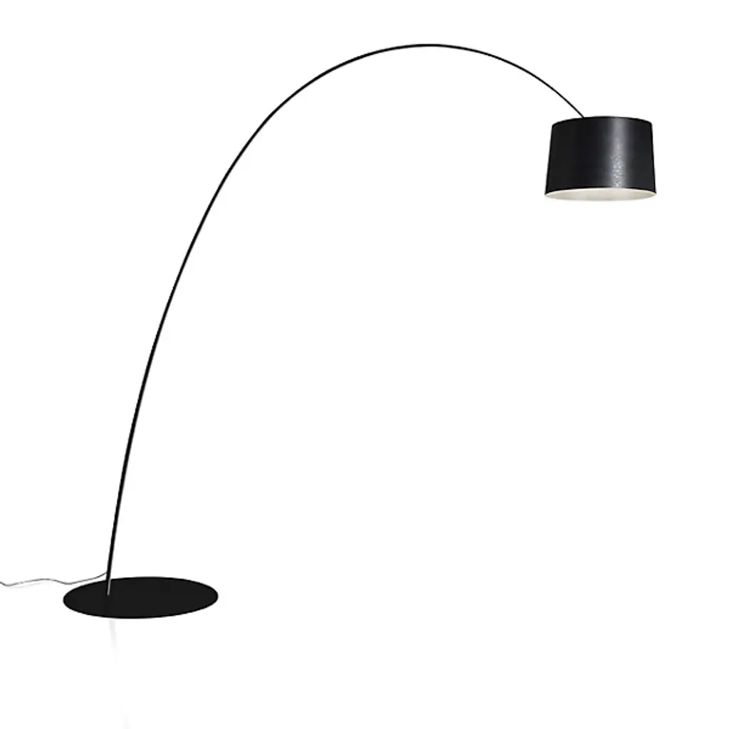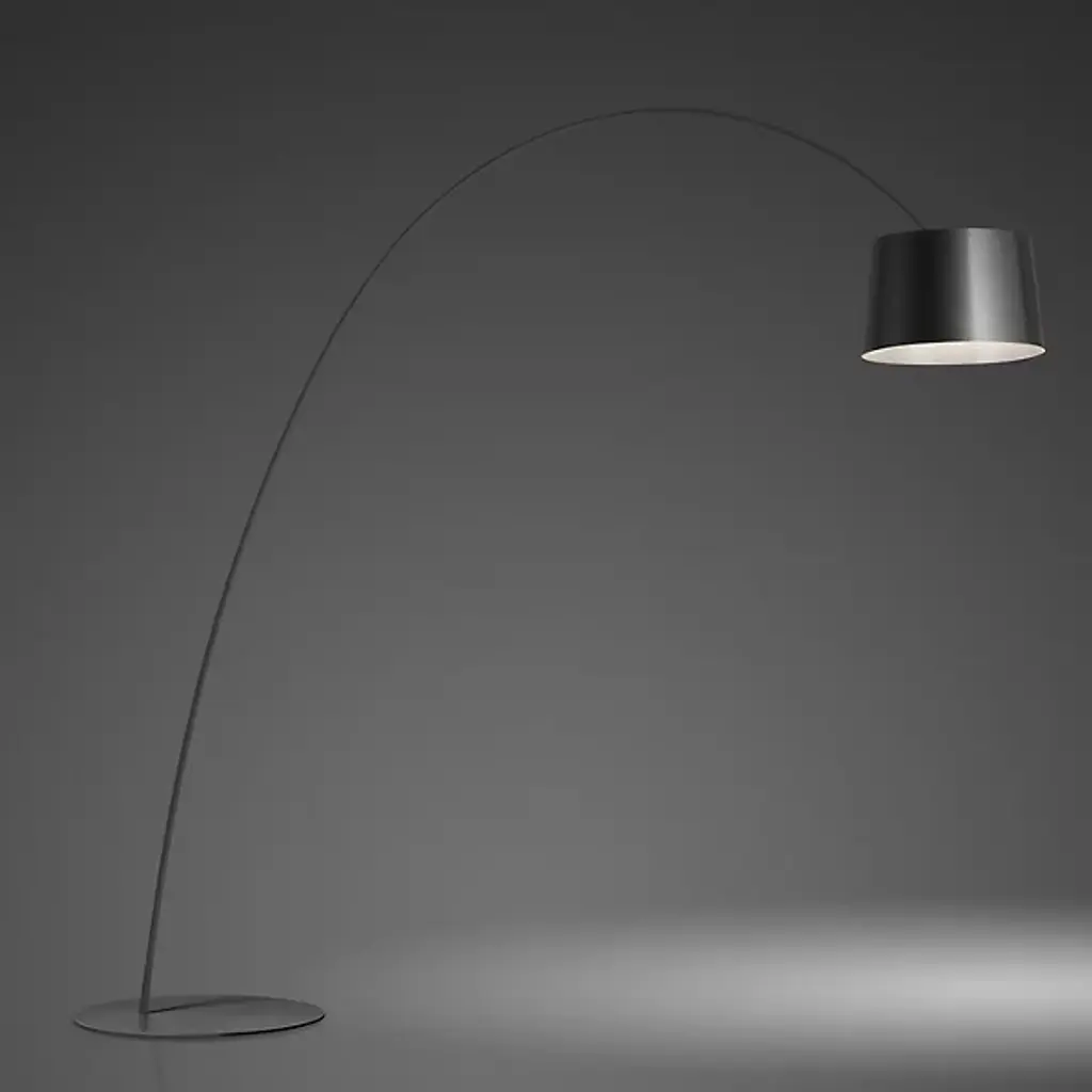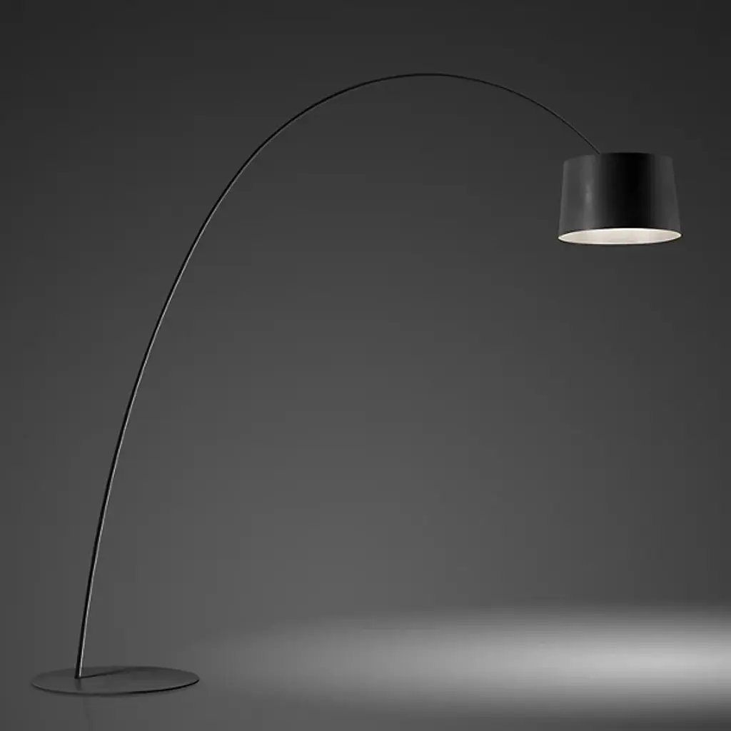 A piece that started as a ‘ridiculous’ idea. A functional modern piece today, the Italian-made Twiggy Elle LED Arc Floor Lamp from Foscarini finds its origins in designer Marc Sadler’s mind as a mannequin holding a fishing rod. Sadler’s passion for art and intellectual curiosity makes for personality-filled designs. Sadler refines the visual of a fishing-rod holding man with a minimalist silhouette. Made from a strong, flexible synthetic fiber, the floor lamp’s stem creates a visual line that hugs a room. This sweeping curve holds its place with a solid and charming circular metal base. Peeking at the end with a curious look, a lacquered fiberglass shade tucks the bulbs inside its deep drum form. Turn it on and receive a blanket of clean downlight together with a soft ambient glow.
