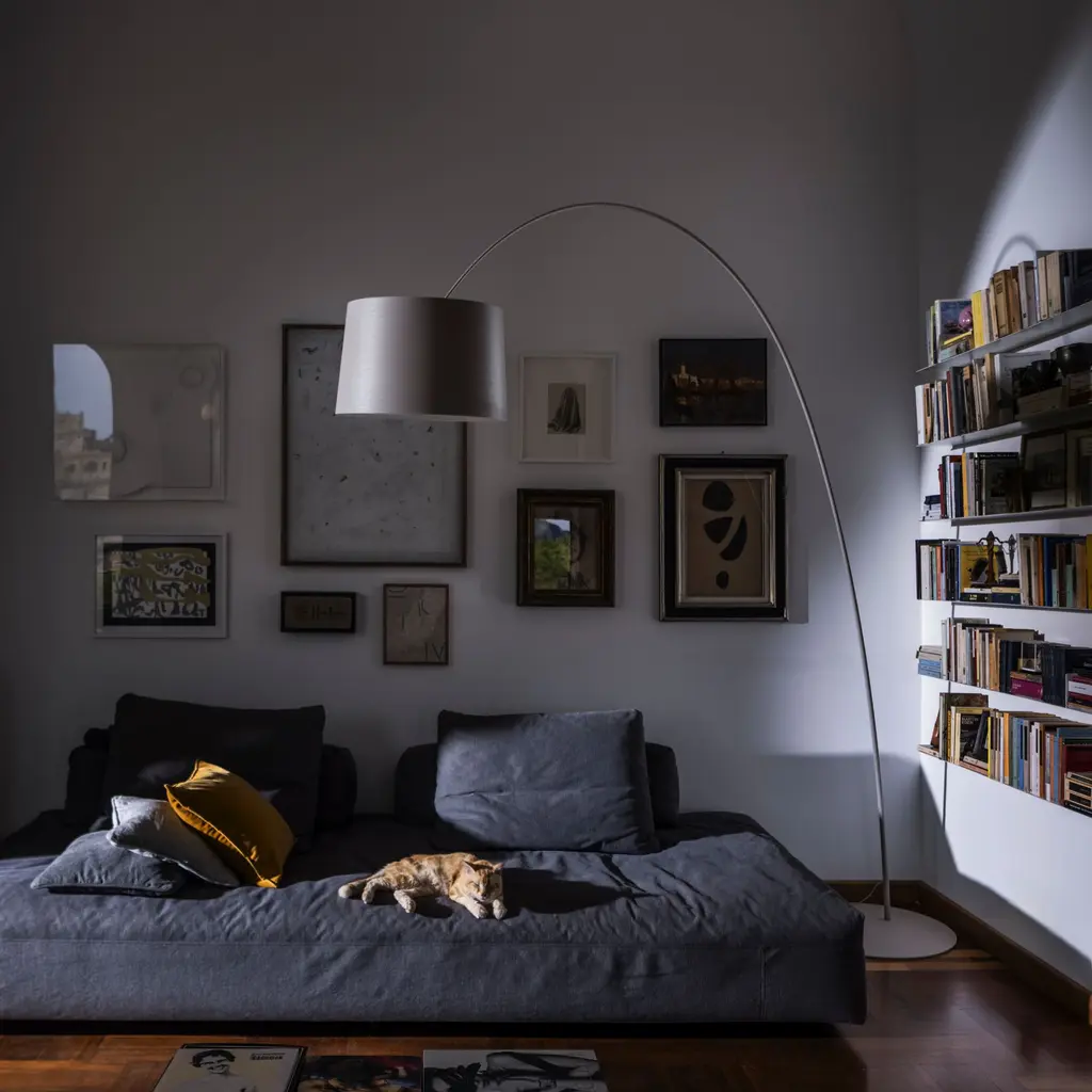 A slender arch, a generous shade, and a counter-weighted stem that hovers where you set it—Twiggy turns the idea of a floor lamp into a single sweeping gesture. Marc Sadler balanced a fishing-rod profile on an epoxy-coated base, hiding four slide-in weights that let you raise or lower the shade without tools. Light spills downward in a clear pool, while a translucent top disc sends a softer glow up to the ceiling. The rod and diffuser are fiberglass-composite, tough yet impossibly thin; wiring tucks inside, so the curve reads uninterrupted. Choose the LED version for high-CRI, halogen-warm illumination with fingertip dimming, or keep it classic with incandescent. Either way, Twiggy sketches an instant focal point—over a sofa, beside a reading chair, or floating above a dining table where a pendant won’t work. Finishes range from understated graphite to punchy carmine, each made and painted in Italy.
