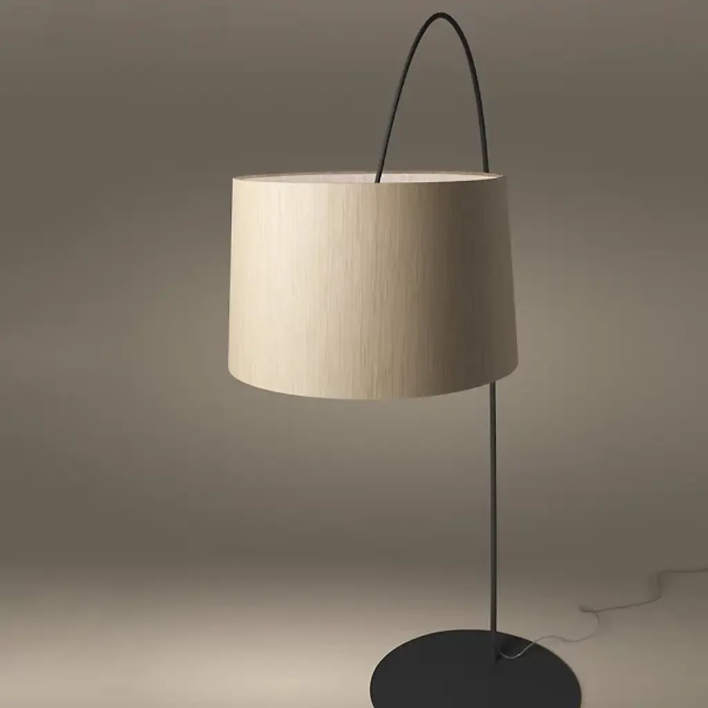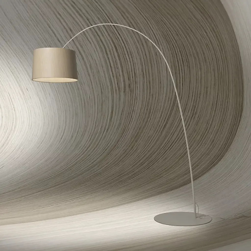 A fishing rod and a mannequin. Industry pioneer Marc Sadler created the Italian-made Twiggy Wood LED Floor Lamp from Foscarini with the ‘ridiculous’ idea of a figure holding a fishing rod. What stemmed from an idea grounded in Sadler’s intellectual curiosity and artistic passion slowly steered toward a design built on function and refinement. Sadler’s key visual for the piece is the arch. He draws the curved line with a flexible and shape-holding synthetic fiber stem. The artfully leaning stem anchors to the floor with the help of a circular metal base. A limed durmast wood shade smiles down at you with a warm, diffused light. The light brings out the tones and textures of the organic wood.