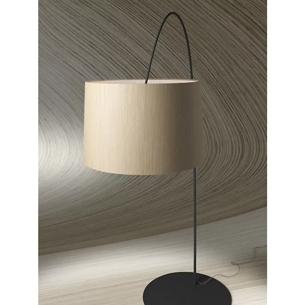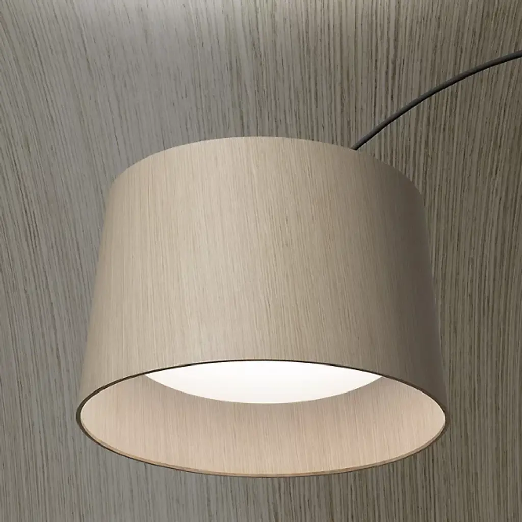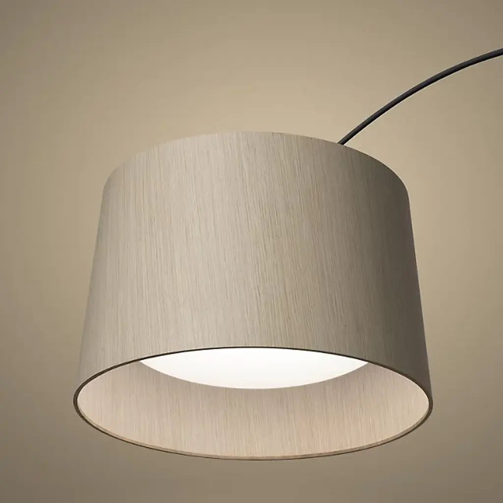A fishing rod and a mannequin. Industry pioneer Marc Sadler created the Italian-made Twiggy Wood LED Floor Lamp from Foscarini with the ‘ridiculous’ idea of a figure holding a fishing rod. What stemmed from an idea grounded in Sadler’s intellectual curiosity and artistic passion slowly steered toward a design built on function and refinement. Sadler’s key visual for the piece is the arch. He draws the curved line with a flexible and shape-holding synthetic fiber stem. The artfully leaning stem anchors to the floor with the help of a circular metal base. A limed durmast wood shade smiles down at you with a warm, diffused light. The light brings out the tones and textures of the organic wood.