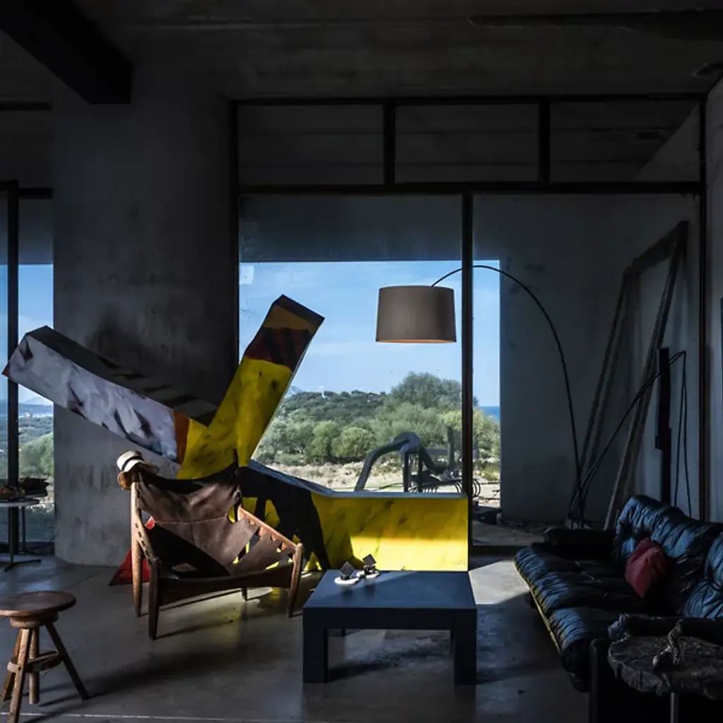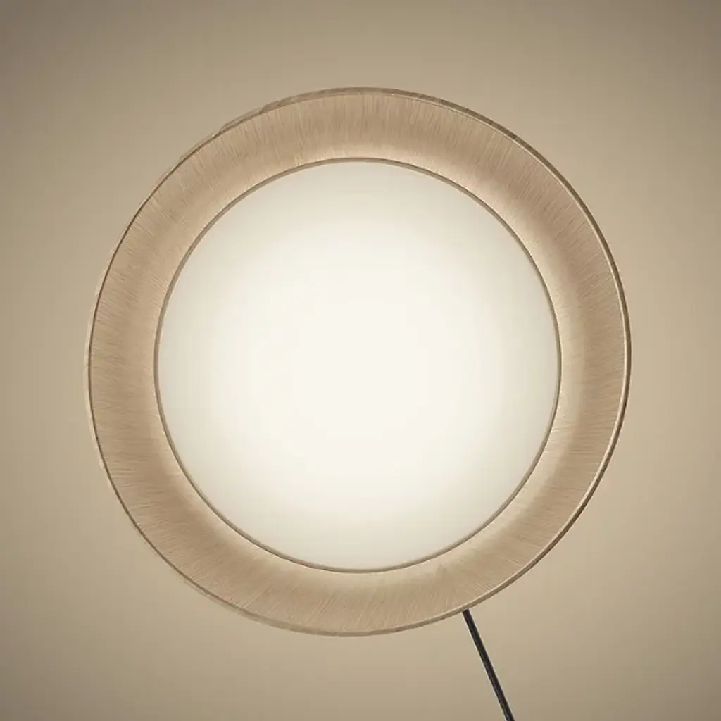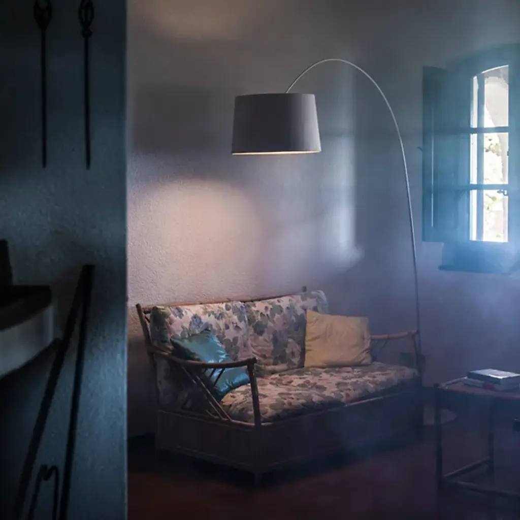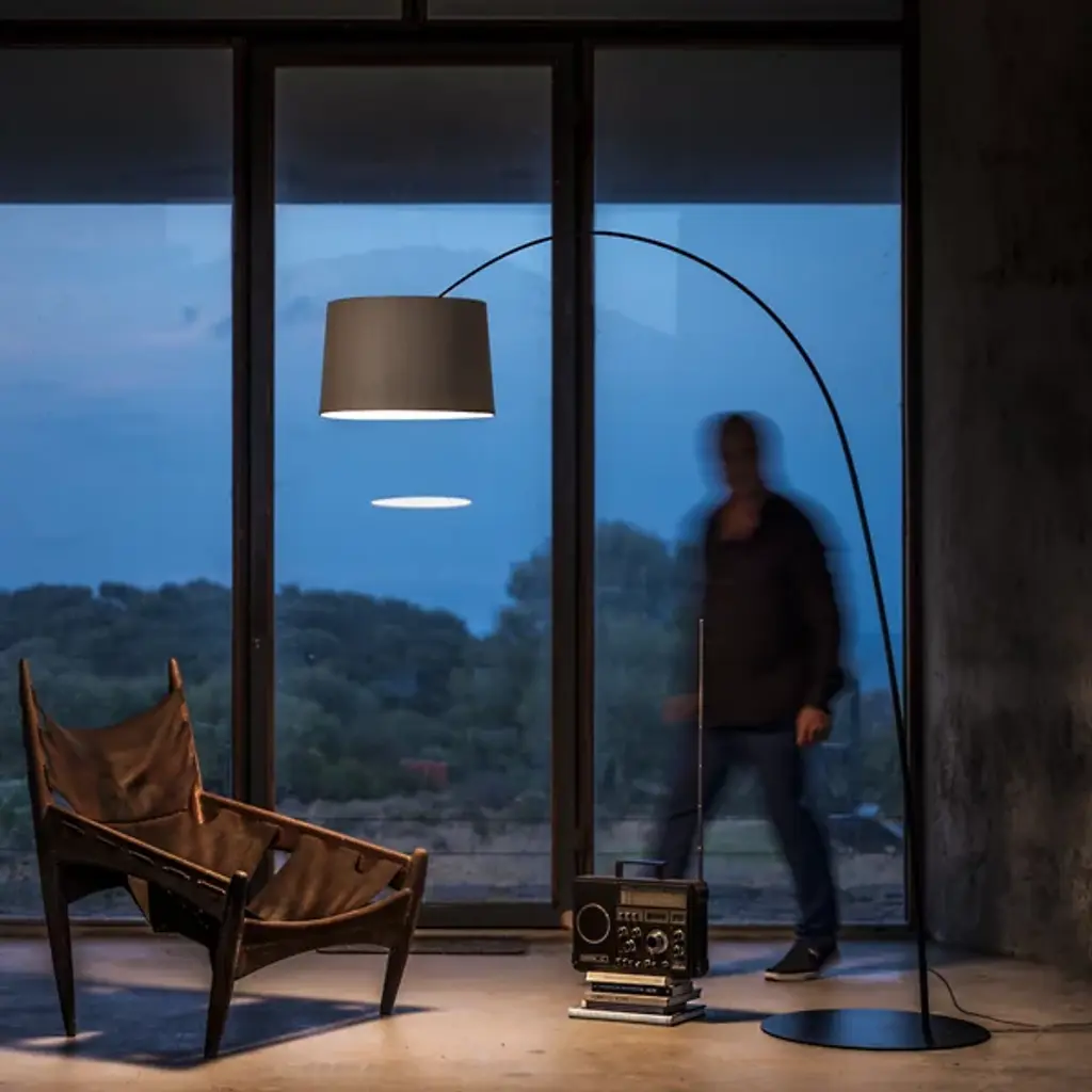 A fishing rod and a mannequin. Industry pioneer Marc Sadler created the Italian-made Twiggy Wood LED Floor Lamp from Foscarini with the ‘ridiculous’ idea of a figure holding a fishing rod. What stemmed from an idea grounded in Sadler’s intellectual curiosity and artistic passion slowly steered toward a design built on function and refinement. Sadler’s key visual for the piece is the arch. He draws the curved line with a flexible and shape-holding synthetic fiber stem. The artfully leaning stem anchors to the floor with the help of a circular metal base. A limed durmast wood shade smiles down at you with a warm, diffused light. The light brings out the tones and textures of the organic wood.