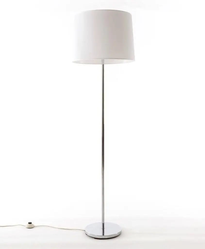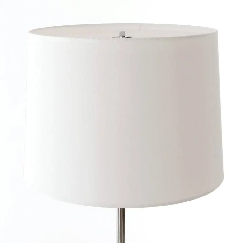 Two floor lamps mod. 'Skop' by J.T. Kalmar, Vienna, manufactured in Austria in Mid-Century 1960s. The stand is made of chrome or nickel-plated brass. Newly refurbished lamp shades. Very simple, minimalistic and timeless design. Each lamp takes three medium screw base bulbs up to max. 60 W per bulb.Priced and sold individually.There are further Kalmar chandeliers, pendant lights, sconces, table and floor lamps in our 1stdibs storefront available. For details please visit our storefront and click the 'View All From Seller' button below.