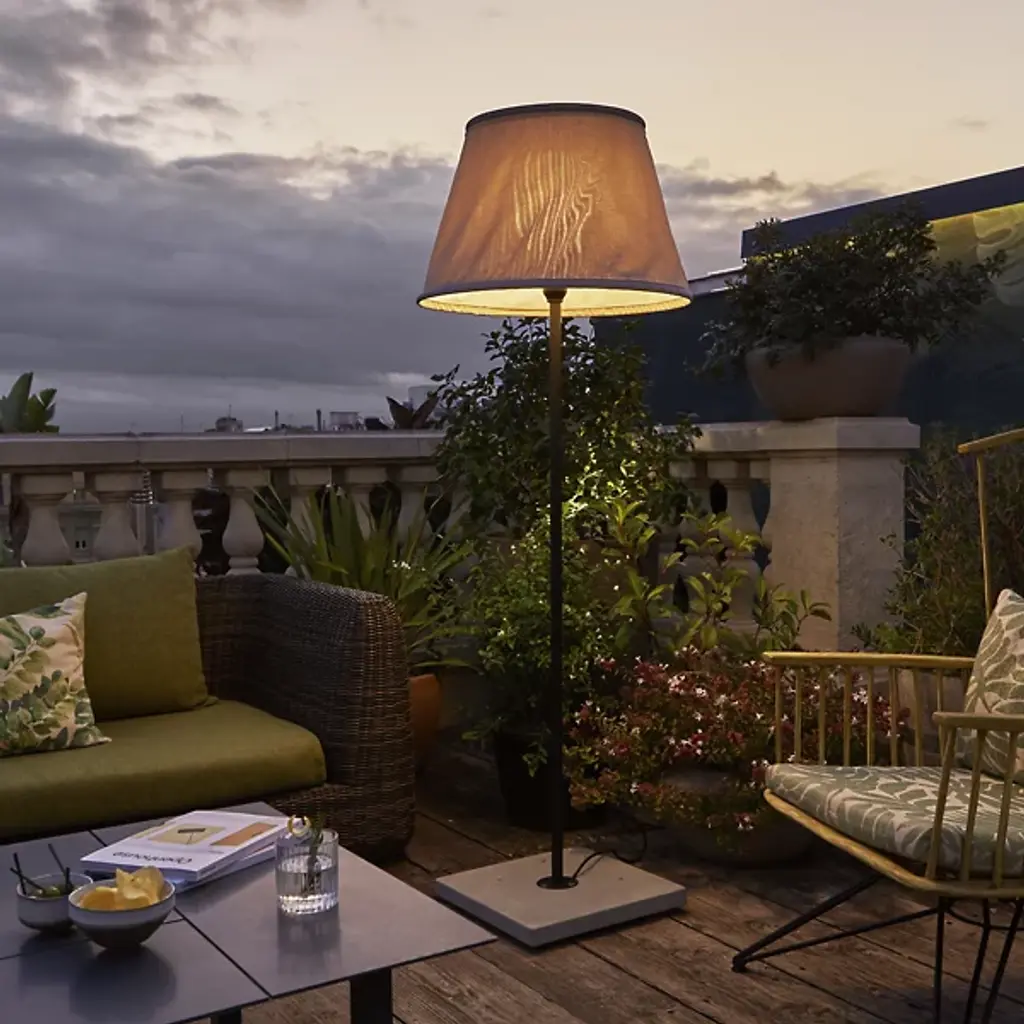 The TXL 2019 Outdoor Floor Lamp by Marset is the excellent work of Joan Gaspar. The shade is crafted to withstand the elements, letting it remain water and weather-resistant. With a solid concrete base and a stainless steel stem, TXL boasts both durability and elegance. The shade, made from textilene and featuring a white acid-etched glass diffuser, exudes Spanish style. The integrated LED is dimmable, offering you the flexibility to set the mood with a separately sold TRIAC dimmer.