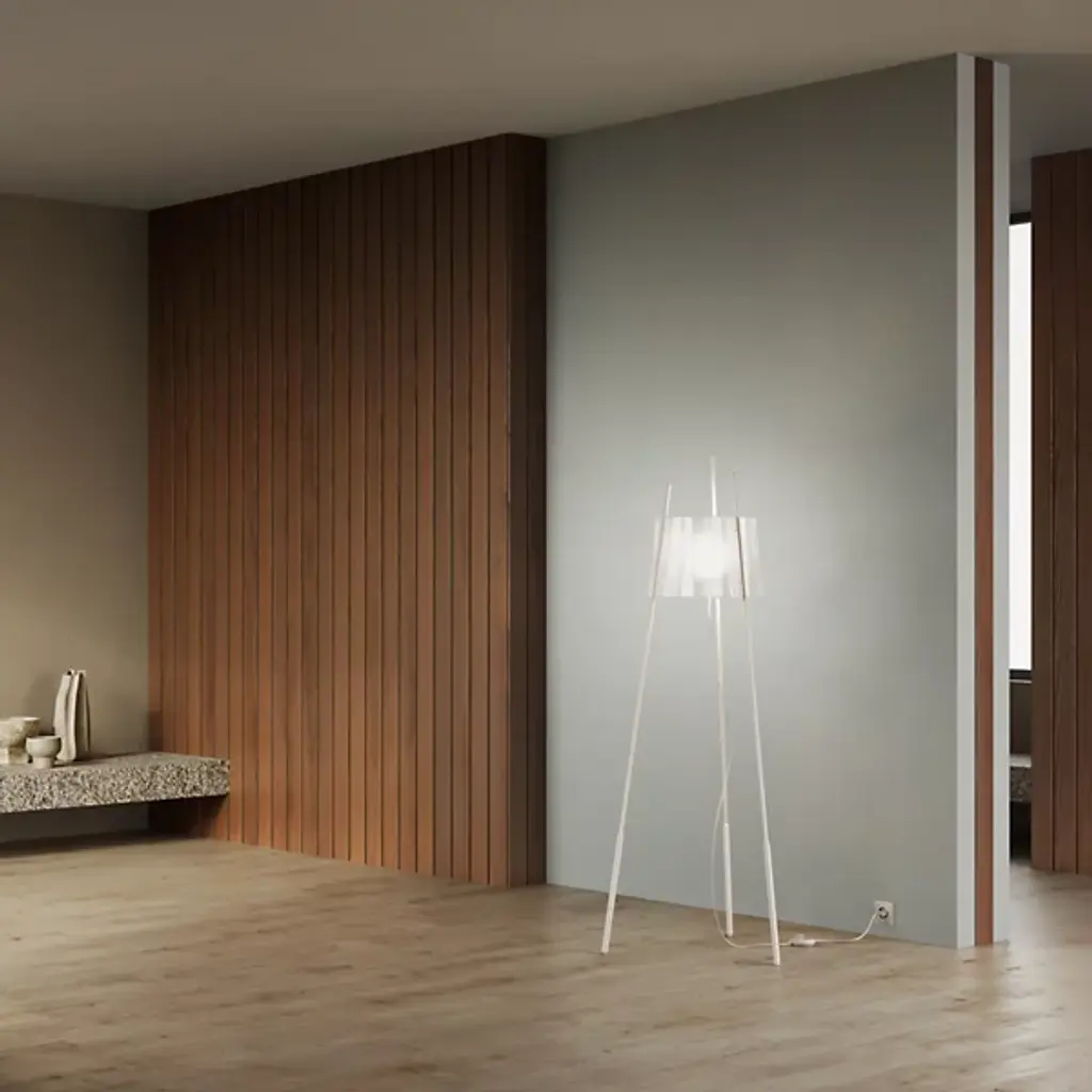 The Tyla Floor Lamp from kdln showcases excellent Italian craftsmanship. This floor lamp was designed by Marc Sadler, who graduated among the first in the “esthétique industrielle” tradition. Supported by ultra-slender metal legs, this lamp boasts a glass shade that grabs your attention. Within this shade rest vibrant LEDs, which bring a brilliant glow to your environment. Segments of this furnishment’s linear framework are secured to the glass shade to keep it well-supported.