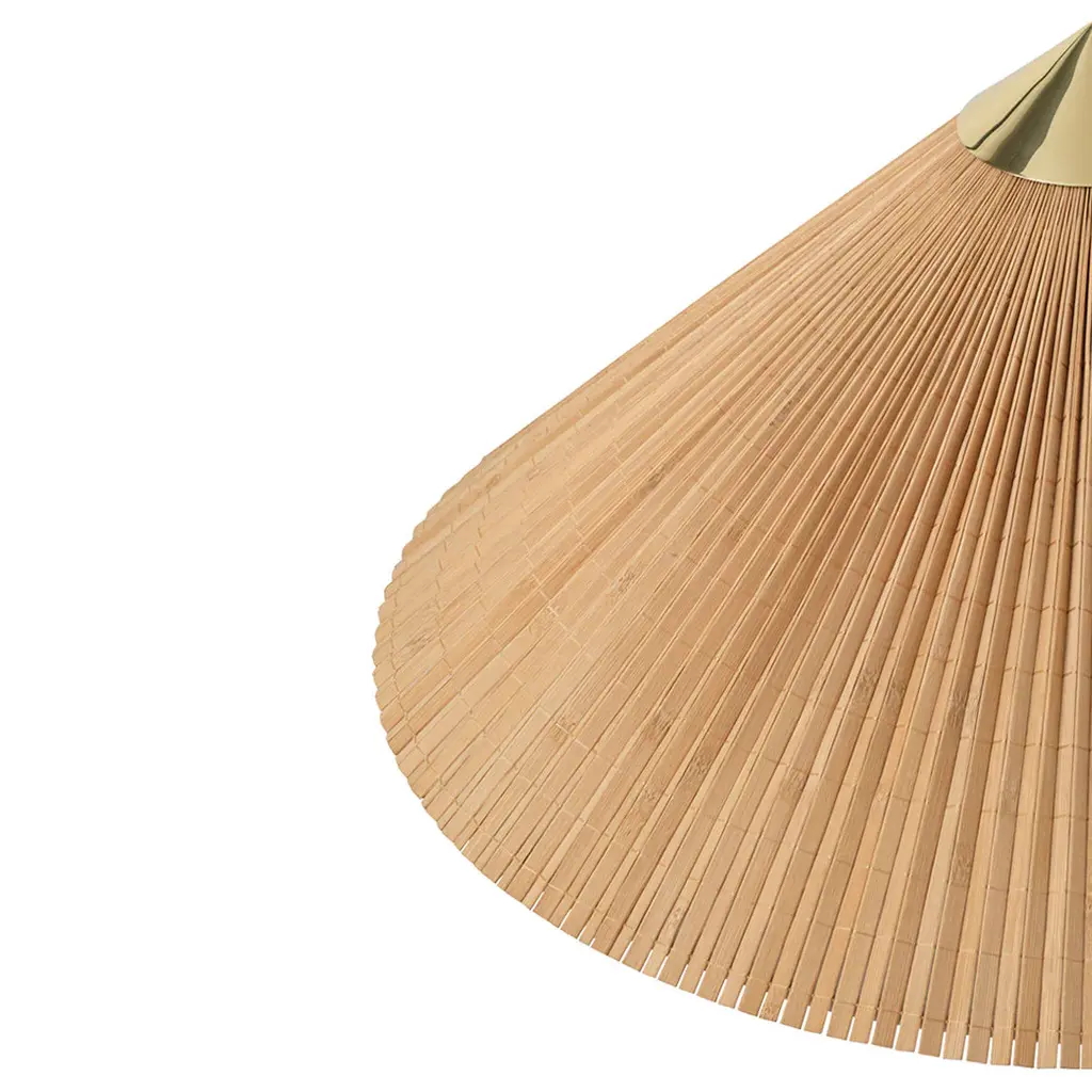 Available in canvas or wicker willow. Brass colored cord. Switch on pole.