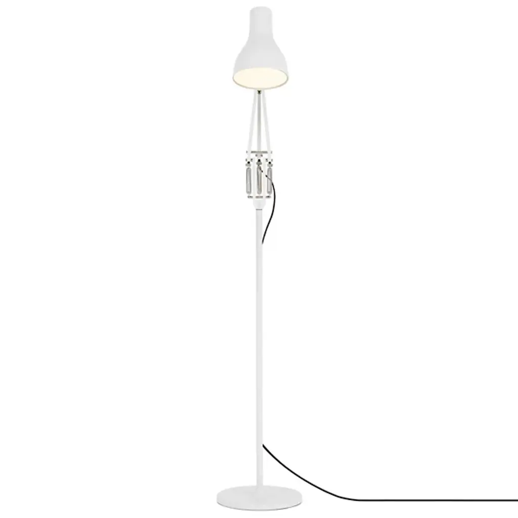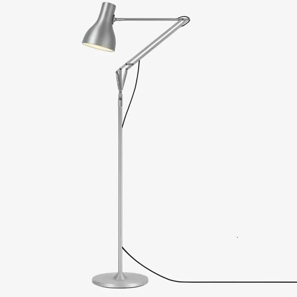 The classic Type 75 form reaches new heights in the Anglepoise Type75 Floor Lamp. This redesign of the original task lamp includes the same distinctively shaped aluminum shade and adjustable arm, this time atop a tall, slender stem for use as a reading light.