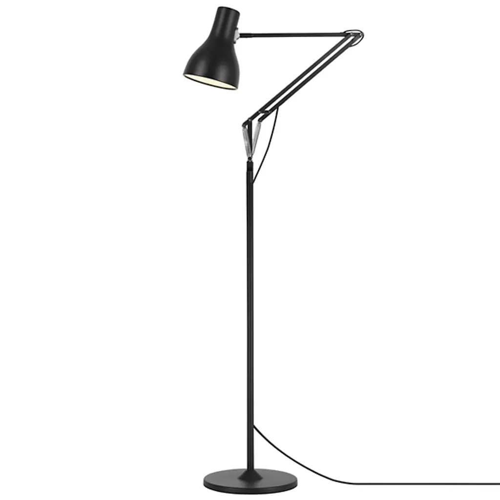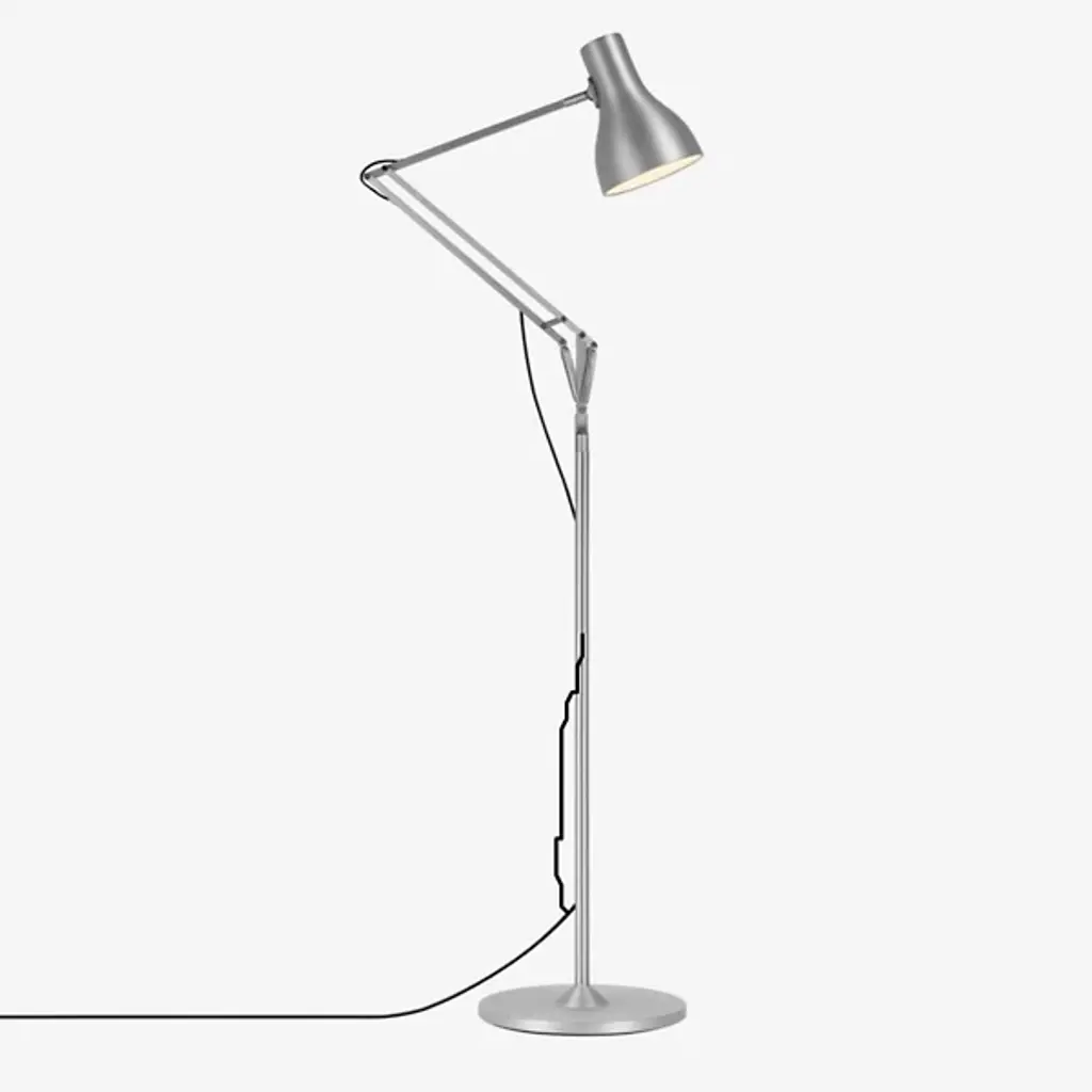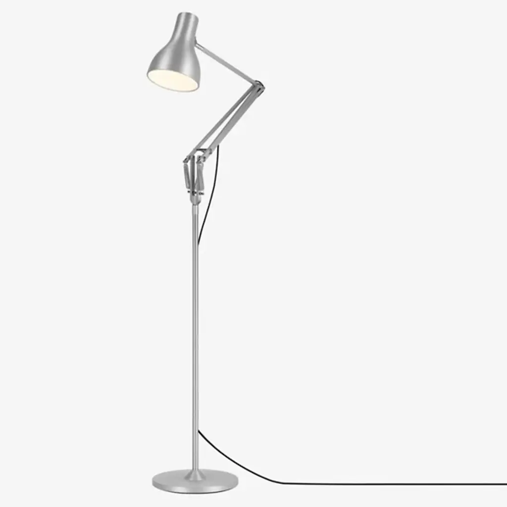 The classic Type 75 form reaches new heights in the Anglepoise Type75 Floor Lamp. This redesign of the original task lamp includes the same distinctively shaped aluminum shade and adjustable arm, this time atop a tall, slender stem for use as a reading light.