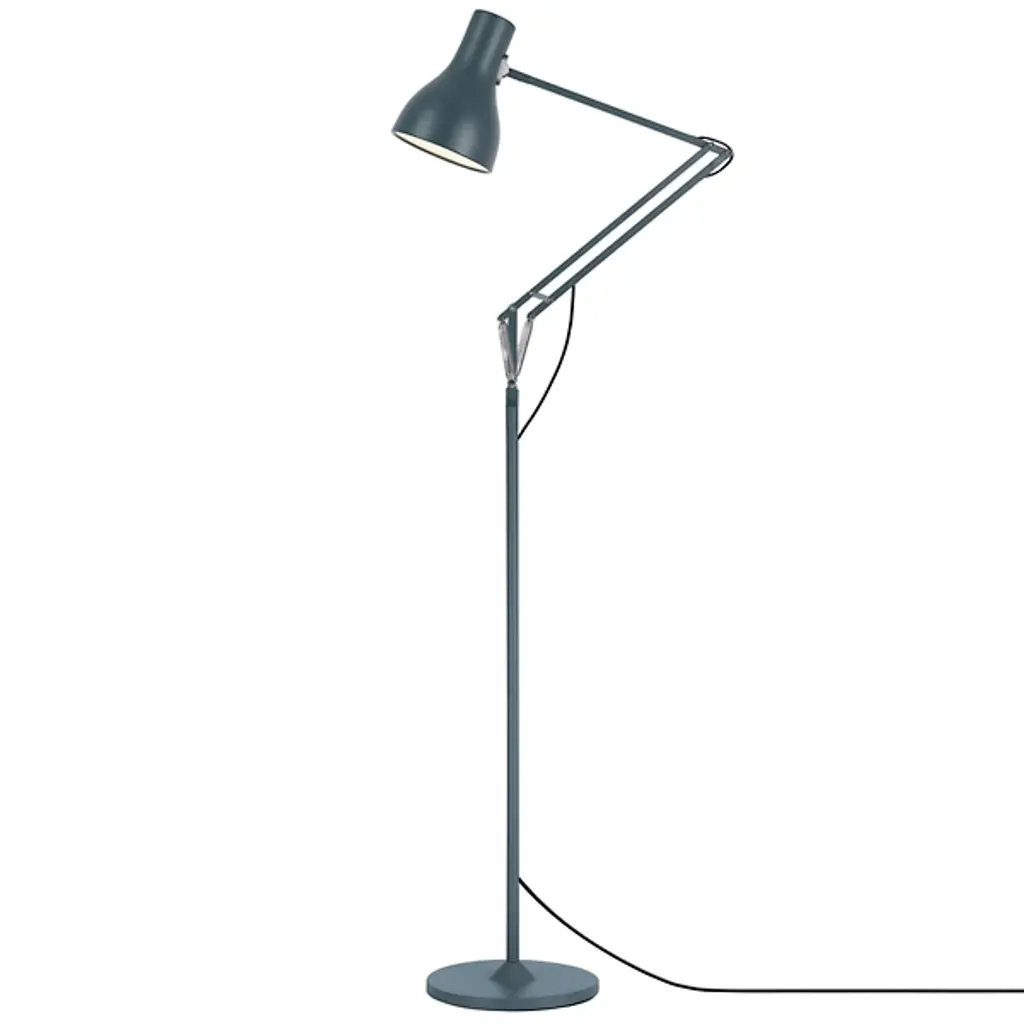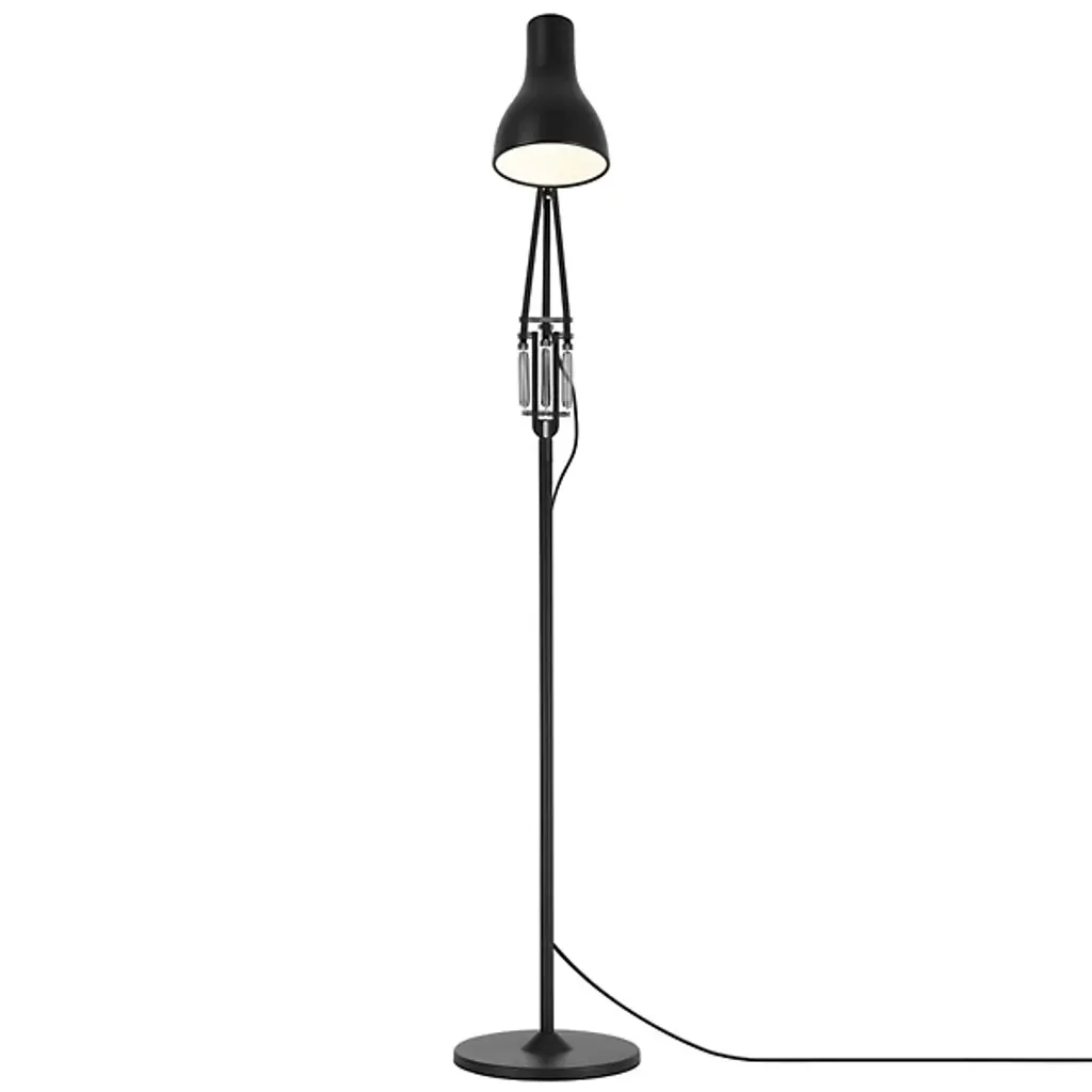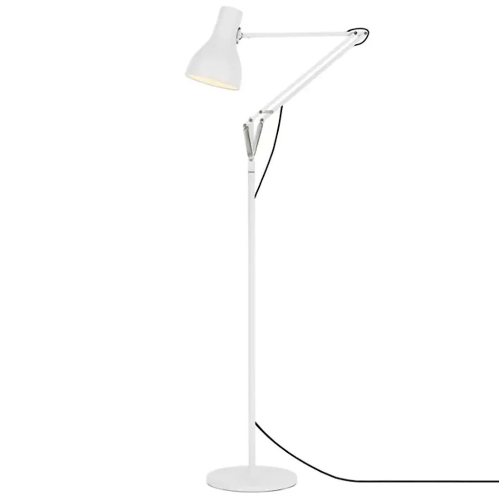 The classic Type 75 form reaches new heights in the Anglepoise Type75 Floor Lamp. This redesign of the original task lamp includes the same distinctively shaped aluminum shade and adjustable arm, this time atop a tall, slender stem for use as a reading light.