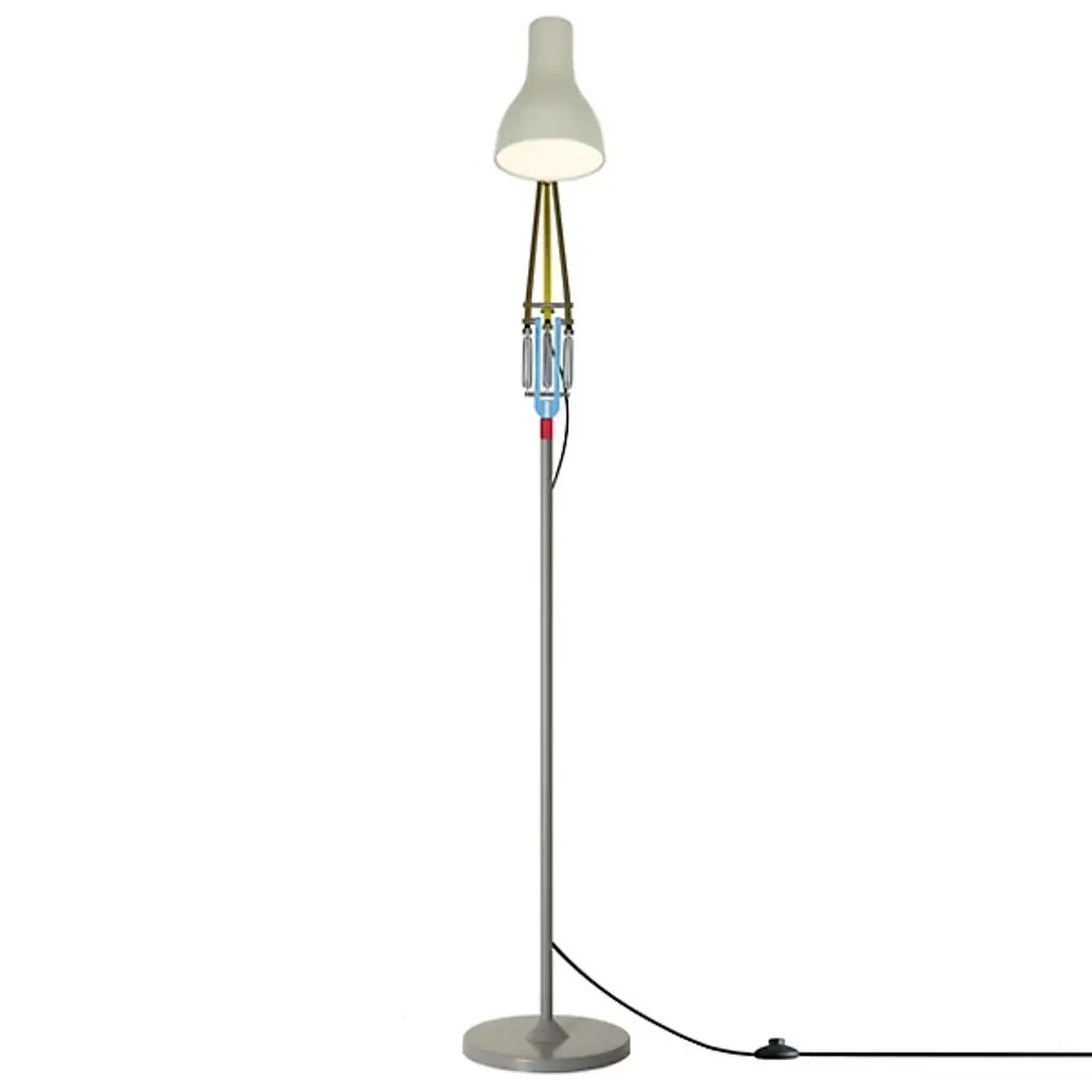 Renowned for his mastery of color, Paul Smith gives the Type 75 Paul Smith Floor Lamp by Anglepoise a playful, visual vocabulary. Highlighting the classic, highly functional, and beautifully formed lamp from industrial product designer Sir Kenneth Grange, a palate of rich hues inspired by the Brittish countryside hug the clean lines and perfect balance of this well-loved silhouette in a patchwork of color. A small but surprising touch of yellow gives this articulate floor lamp a tailor-made look that embodies Smith’s “classic with a twist” approach to style as it lights up spaces in your home.