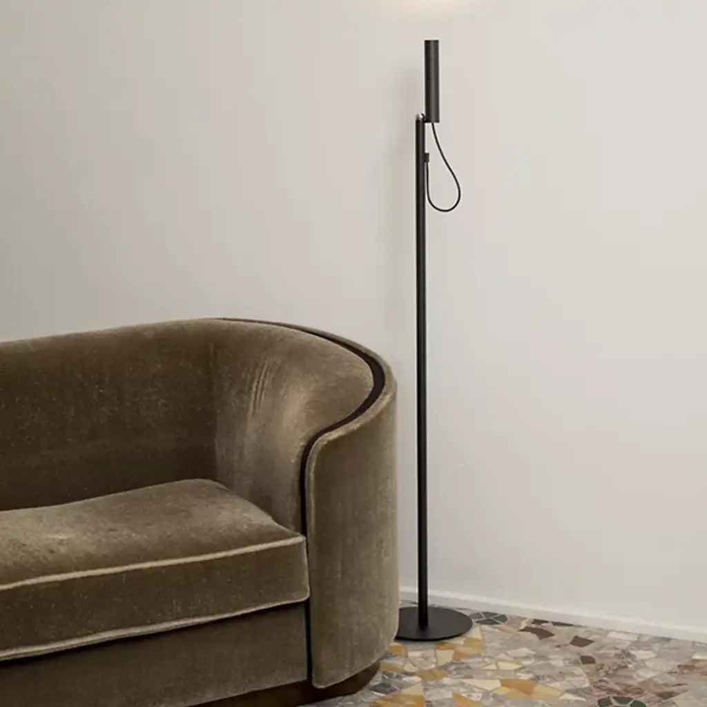 The Type LED Floor Lamp from Nemo brings cutting-edge technology to modern lighting. Designed by Guillaume Bloget, its sleek matte black aluminum frame features an innovative 360° rotational magnet and intuitive gesture control to command the lamping. Adjust the beam angle, brightness, and direction with a simple hand movement, creating tailored illumination with ease. Perfect for contemporary interiors, this Italian-made masterpiece combines sharp lighting precision with a minimalist aesthetic, redefining the functionality and style of floor lighting.