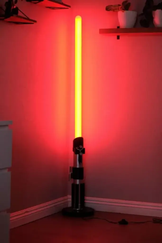 If you're ready to join the Dark Side, read your Sith handbook by the light of this Star Wars Floor Standing Vader Lightsaber Lamp. With an ominous red glow, this 5-foot-tall floor lamp includes 102 long-lasting LEDs for an intense experience. It runs on electricity (not crystals) and comes with a remote control that allows you to dim it when your own personal dark side needs a bit less illumination.