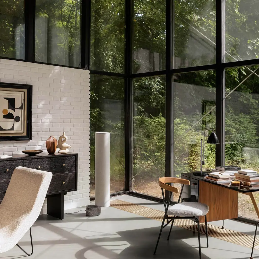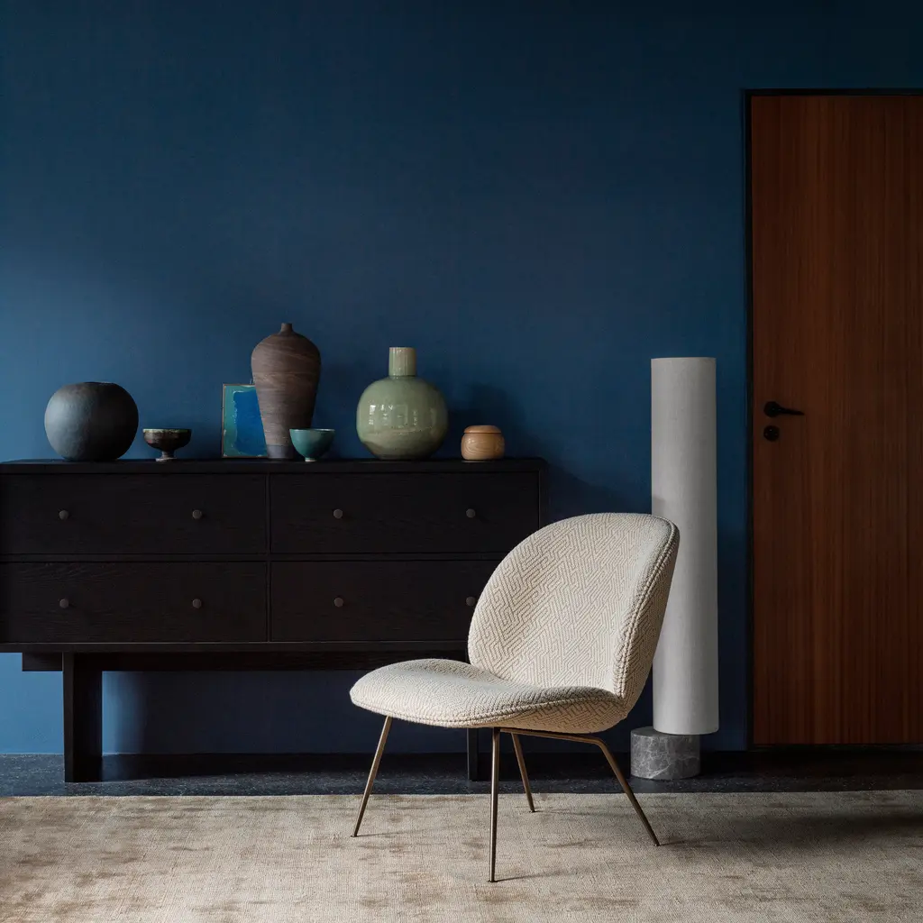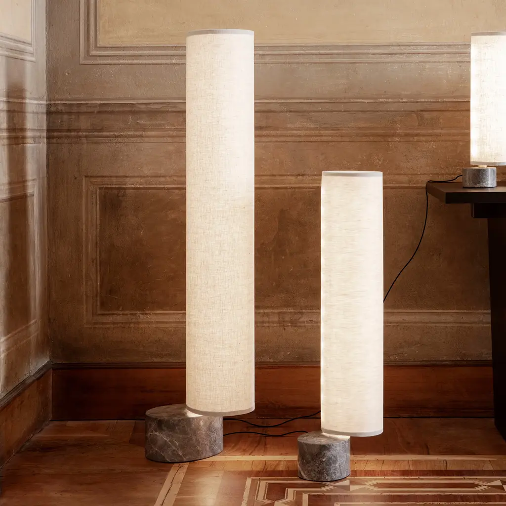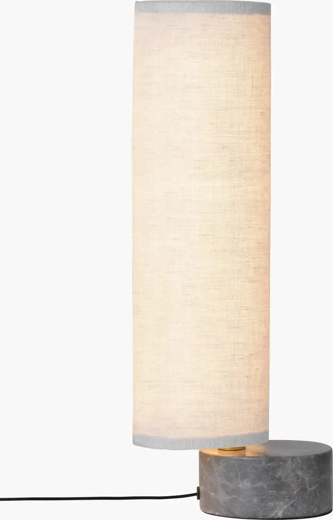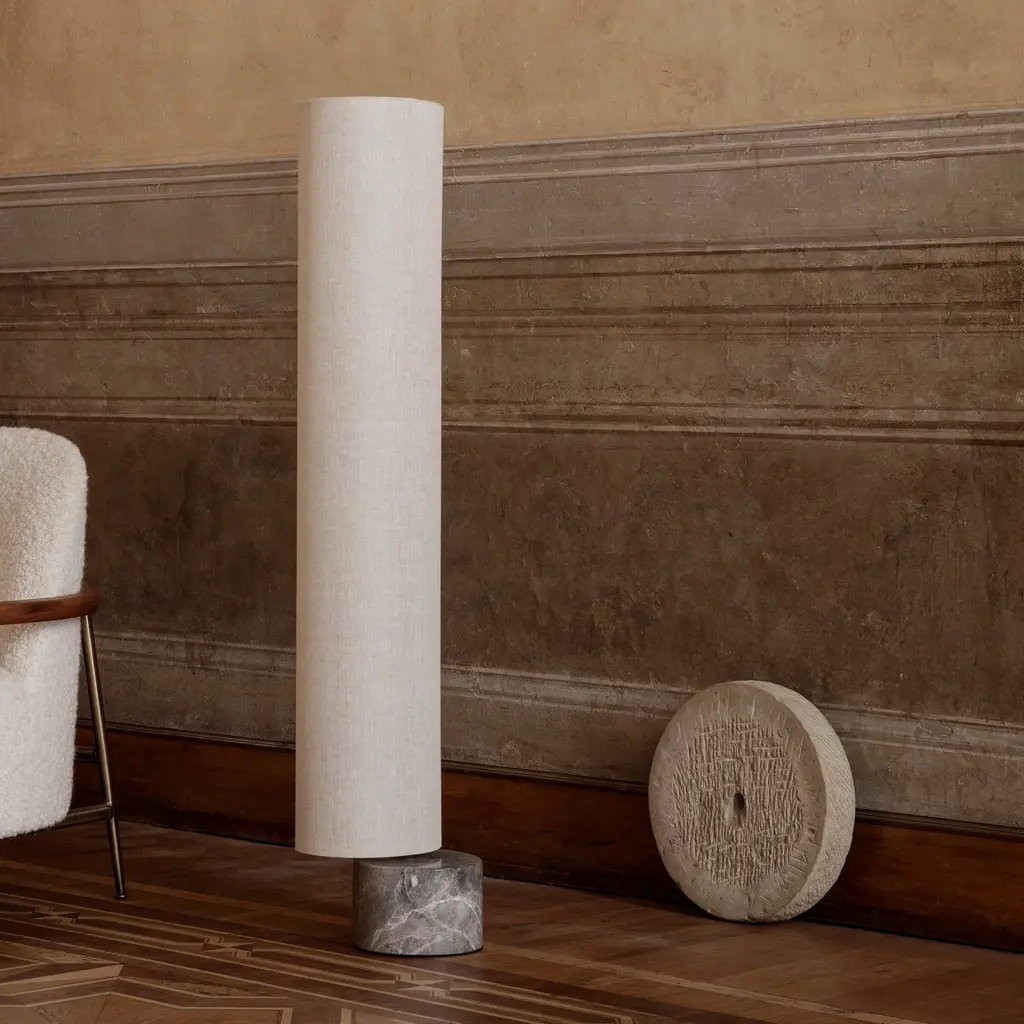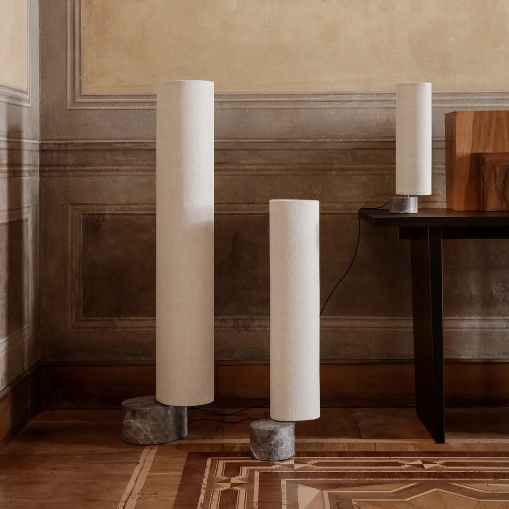 Unbound means not tied to convention and Space Copenhagen is thinking freely with this namesake floor lamp for Gubi. Anchored by a tear-drop base in rich grey marble, the tall fabric shade in the same shape is engineered to weightlessly rotate 360 degrees via a carefully engineered ball joint. Available in 2 sizes, the light's sections only align perfectly once every slow turn, so a playful asymmetry rules. Within the shade, dimmable LEDs create a softly diffused light without casting internal shadows.