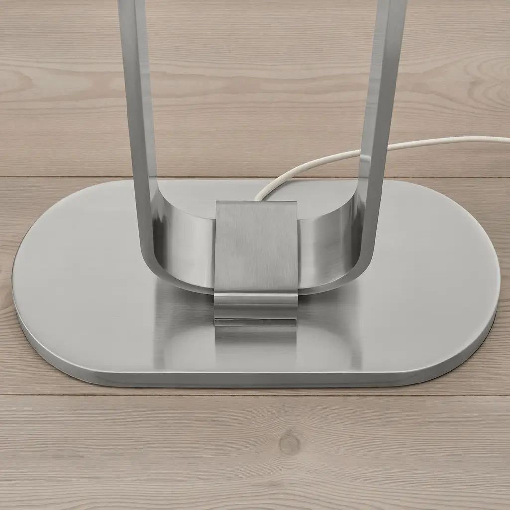 UPPVIND Floor lamp - nickel plated/white 59 ". The lamp gives a soft light and creates a warm, cozy atmosphere in your room. Light bulb sold separately. IKEA recommends LED bulb E26 globe opal white.
