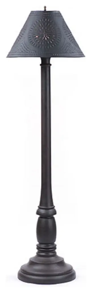 Usa Handcrafted Wood Floor Lamp Textured Paint Finish, Black, Punched Tin Shade