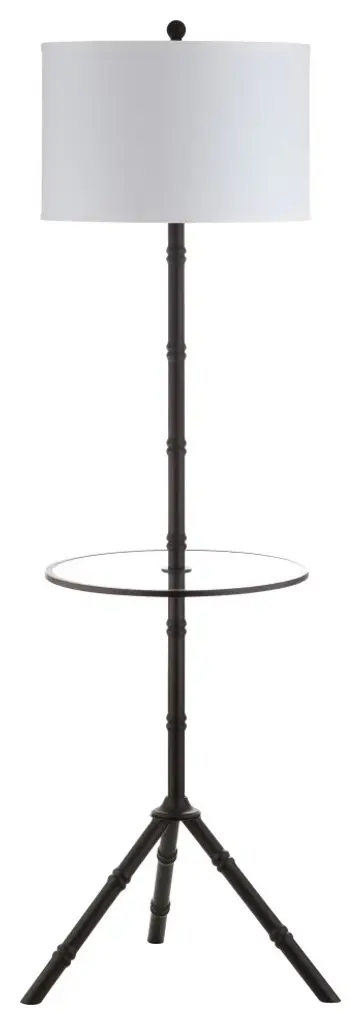 Provide a little extra light in a dark hallway or light up a corner with this floor lamp. Featuring a push-button on and off switch, this lamp is easy to use. A metal base offers long-lasting durability, and the fabric lamp shade filters light to provide an inviting ambiance.Large modified round drum lampshade diffuses light beautifullyRequires 150-watt bulb to provide plenty of light indoorsOil-rubbed bronze finish brings a subtle, Old-World feel to your roomOn/off switch is easy to operateMeasures 69.5"H x 21"W x 13.5"D
