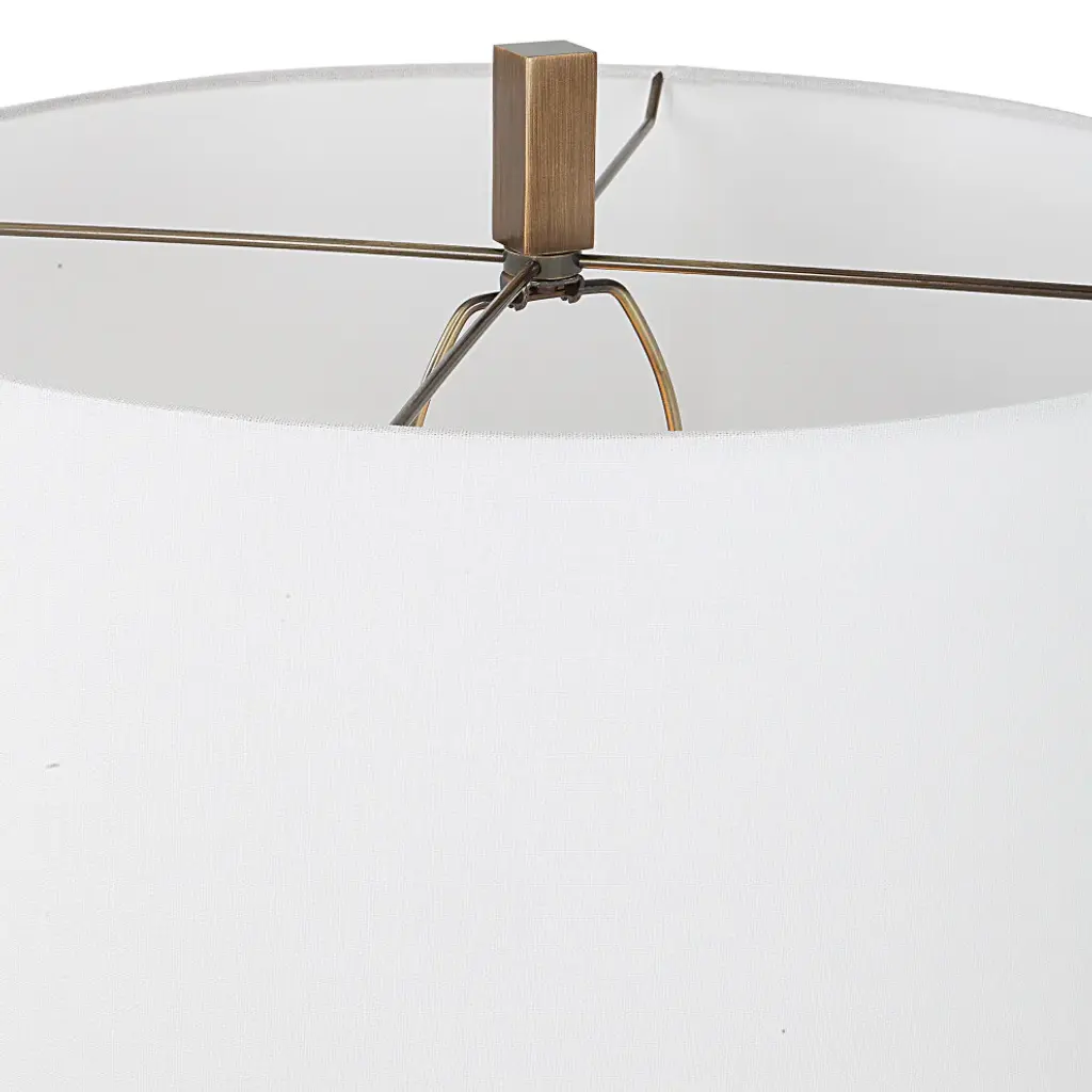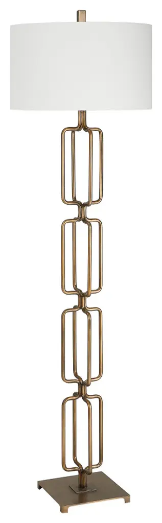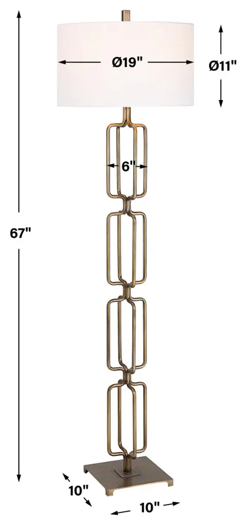 The Link Floor Lamp Features A Unique Design Made From Hand Forged Iron, Finished In A Heavily Antique Brushed Gold. The Hardback Drum Shade Is Covered In A White Linen Fabric. Uttermost''s Lamps Combine Premium Quality Materials With Unique High-style Design. With The Advanced Product Engineering And Packaging Reinforcement, Uttermost Maintains Some Of The Lowest Damage Rates In The Industry. Each Product Is Designed, Manufactured And Packaged With Shipping In Mind. DimensionsDepth: 19 in. Width: 19 in. Height: 67 in.