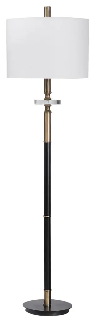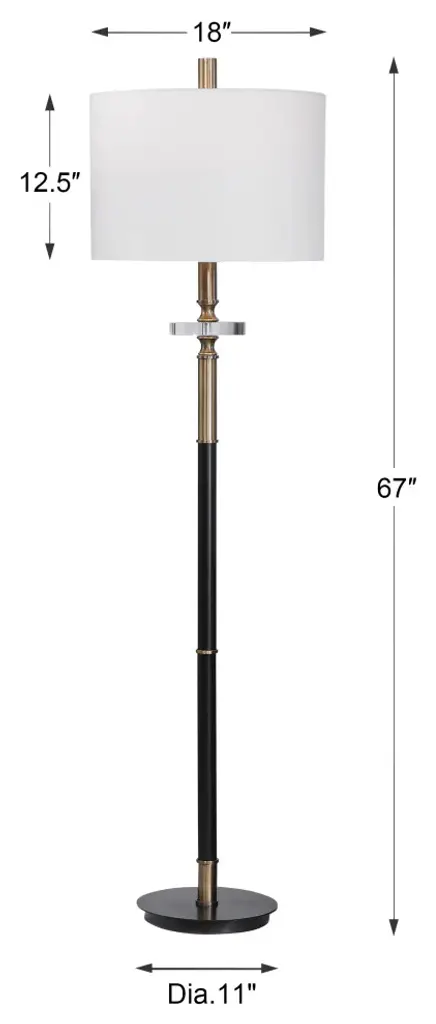 Traditional Elegance Is Showcased In This Floor Lamp, Finished In An Aged Black With Antique Brass Plated Accents And A Thick Crystal Ornament. The Round Hardback Drum Shade Is A White Linen Fabric. Uttermost''s Lamps Combine Premium Quality Materials With Unique High-style Design. With The Advanced Product Engineering And Packaging Reinforcement, Uttermost Maintains Some Of The Lowest Damage Rates In The Industry. Each Product Is Designed, Manufactured And Packaged With Shipping In Mind. DimensionsDepth: 18 in. Width: 18 in. Height: 67 in.