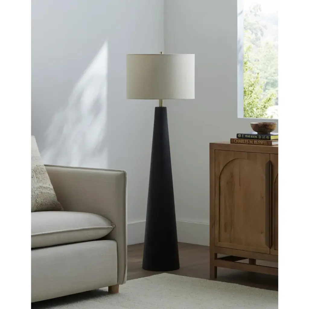 Introducing the Baobab accent floor lamp, a striking blend of Arts & Crafts Traditional style that promises to elevate any living space with its graceful presence. Standing at 53 inches tall, this lamp features a beautifully crafted rubber wood body that exudes a warm and inviting aura. The shade is an exquisite composition of linen and polyester on the outside, with pure polyester on the inside, offering a delicate balance of texture and durability. Topped with an iron finial for that perfect finishing touch, the Baobab lamp is not just a source of light but a statement piece that seamlessly integrates functionality with aesthetic charm. Easy to maintain, just wipe it clean with a dry cloth to keep its finish looking pristine. Whether nestled beside your favorite reading chair or highlighting an elegant corner in your home, this accent floor lamp is designed to captivate and illuminate.