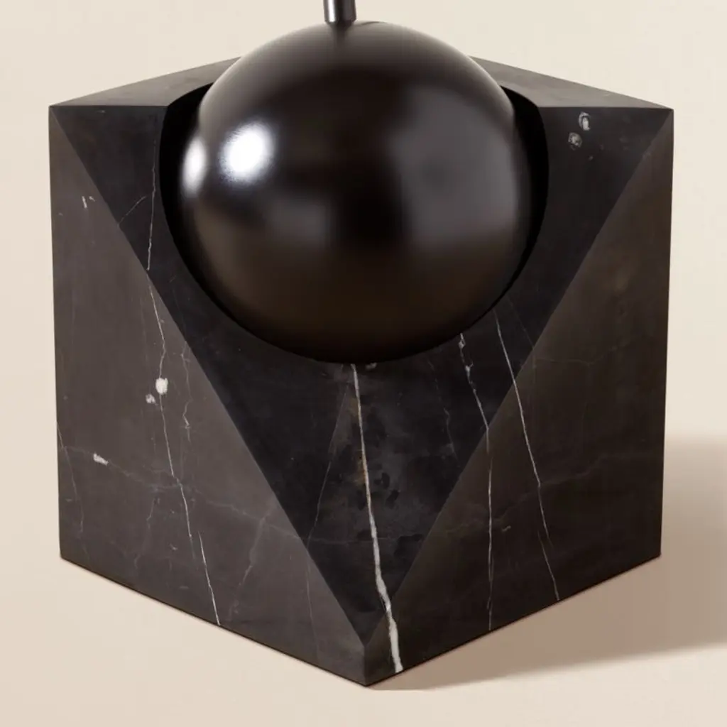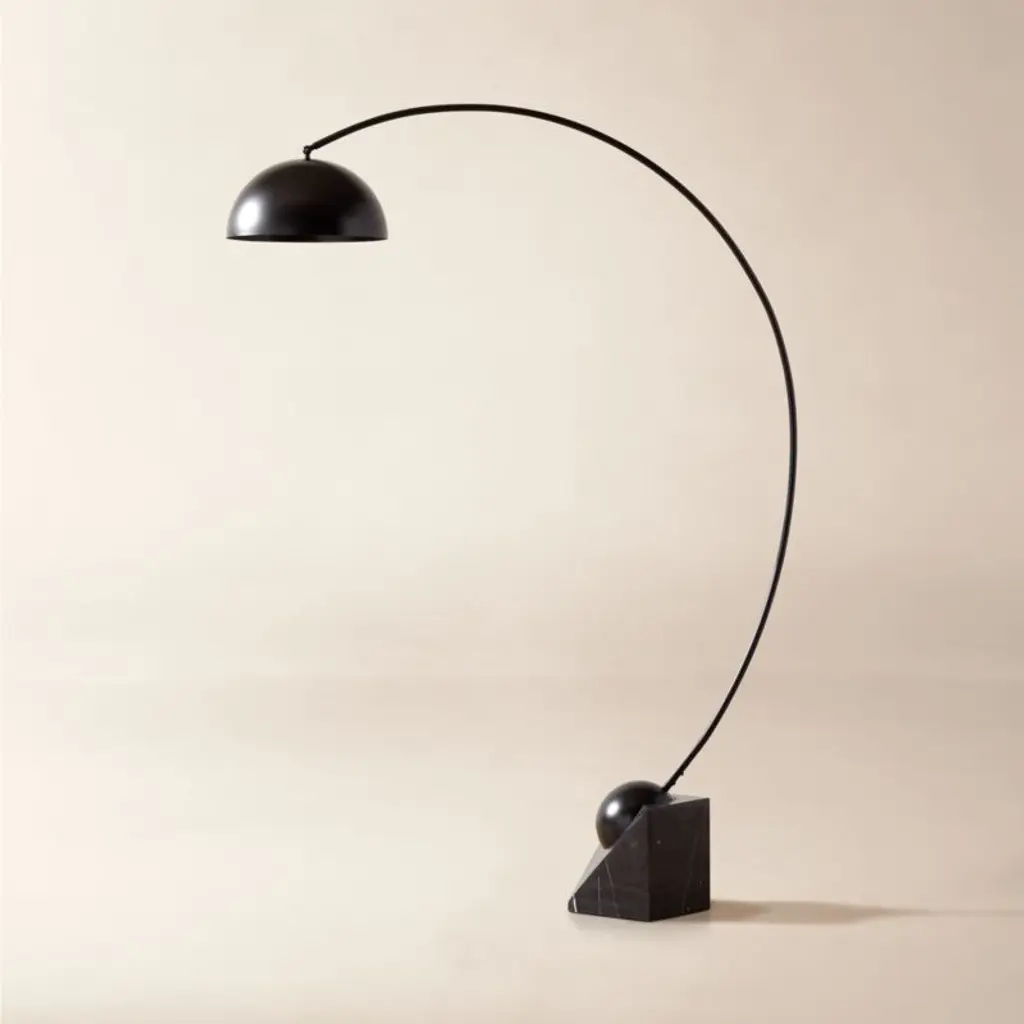 Arc floor lamp is a revival of 1960s Italian forms with a postmodern twist. "Venus harkens back to Grace Jones in the '80s vibe," explains NYC-based designer Farrah Sit. Sculpted from solid Marquina black marble, sharp angular base is balanced by one continuous rod of blackened iron that softly arcs over the fixture. Using materials that are cool to the touch, Sit contrasts basic geometric shapes that reflect postmodern motifs. Honed marble is punctuated with crisp white veining that makes each fixture unique. CB2 exclusive.