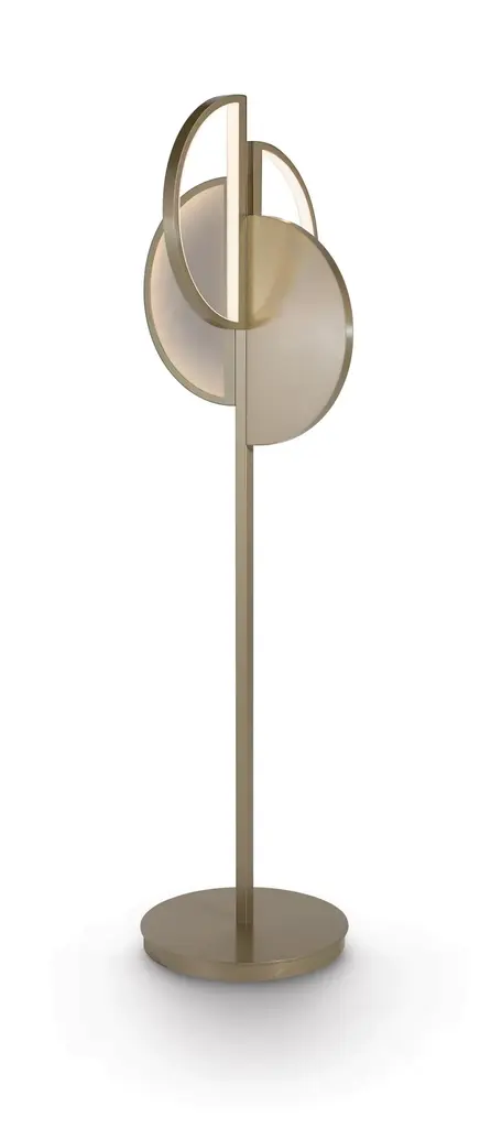 Venus is a lamp with brass frame in champagne or brushed nickel finish. Two decorative inserts in backlit foam glass. This floor lamp is characterized by a brass frame from which half-spheres in backlit Vetrite glass branch out. An elegant and versatile line with a warm and enveloping light.BULB INFORMATION80 WATT STRIP LED2700°K · 7845 LUMENVOLTAGE220 V · Different voltage on requestCERTIFICATIONCE