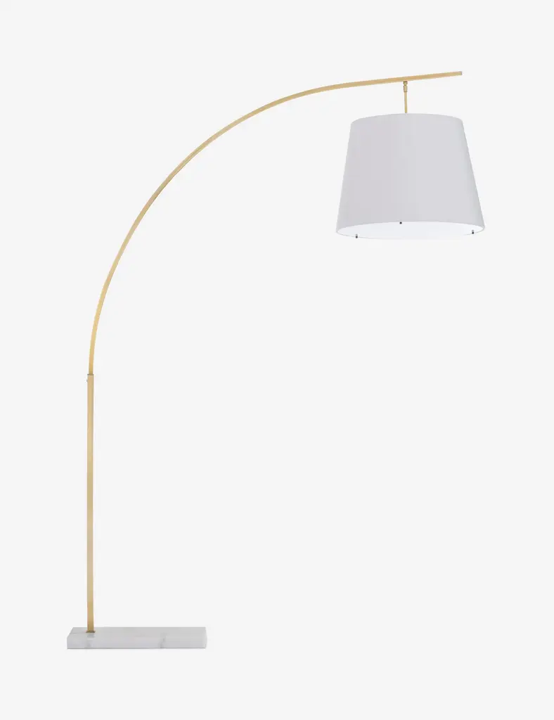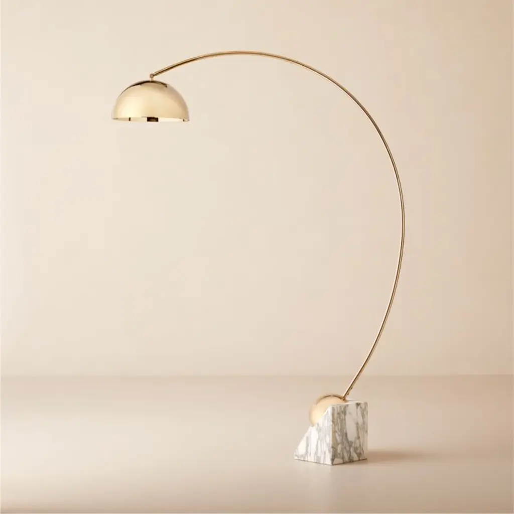 Venus Champagne Brass Arc Floor Lamp With White Marble Base