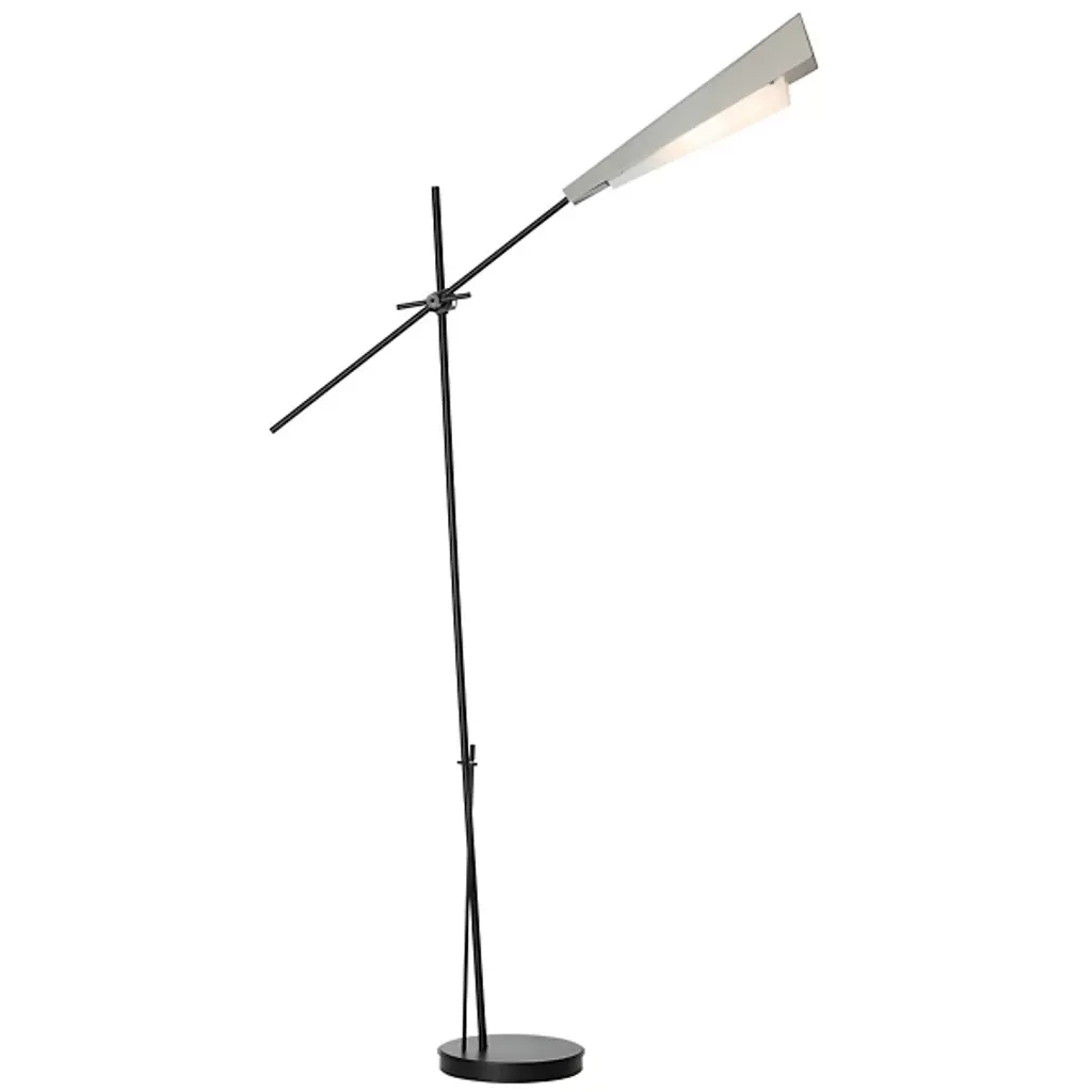 An elegant, minimalist floor lamp designed inspired by origami. With its angled metal and glass shade, the Vertex Floor Lamp by Hubbardton Forge evokes an origami crane, an effect that’s only enhanced by the up and down movement made possible by the swivel joining the slender arm and base. A dimmer rod adds even more convenient adjustability; it extends up from the base for easy control of the light’s brightness in a reading nook or office.