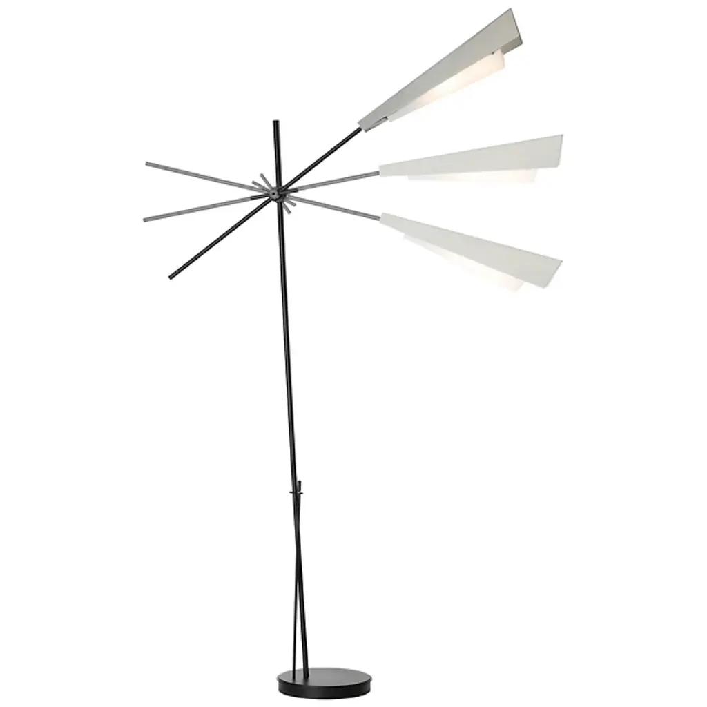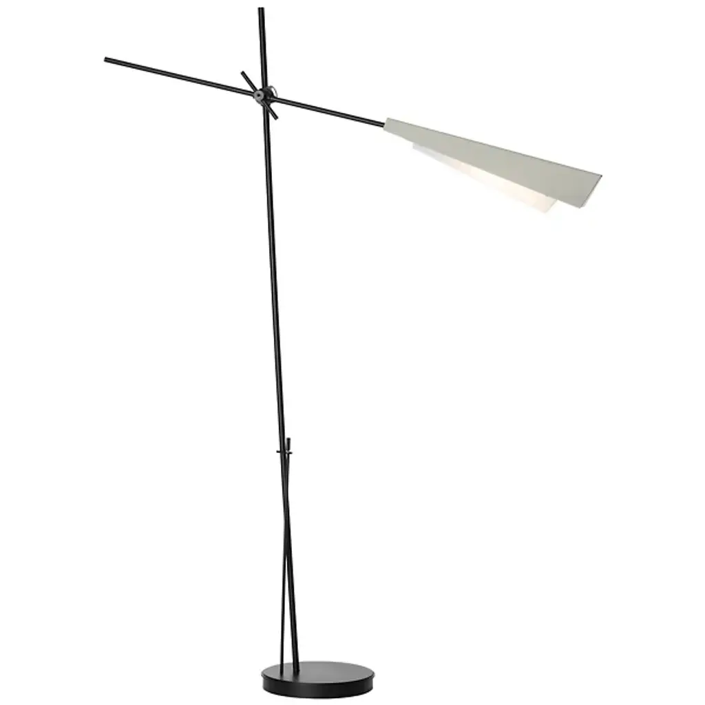 An elegant, minimalist floor lamp designed inspired by origami. With its angled metal and glass shade, the Vertex Floor Lamp by Hubbardton Forge evokes an origami crane, an effect that’s only enhanced by the up and down movement made possible by the swivel joining the slender arm and base. A dimmer rod adds even more convenient adjustability; it extends up from the base for easy control of the light’s brightness in a reading nook or office.