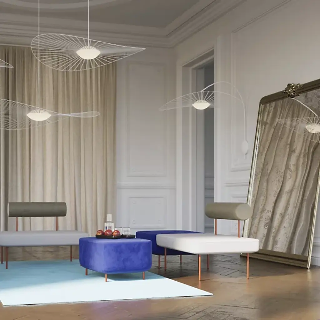 A star is born. The Vertigo Nova LED Floor Lamp from Petite Friture is a heavenly lighting experience inspired by an exploding celestial body. Whether you’re basking in its warmth up close or basking in its warmth from afar, this piece pleases both on and off. The slender metal structure draws gentle curves across your room. It pairs its refined silhouette with a cantilevered construction for personalized adjustments. From the curves of the structure, the eyes journey to the suspended light source. Packed with LEDs, the sandblasted blown diffuser twirls with a little breeze. The handcrafted veil surrounding it creates the image of the supernova with designer Constance Guisse’s sense of delicacy and imagination. The flowing ribbons of the veil let light pass through, creating a dramatic silhouette and an intimate ambient glow.
