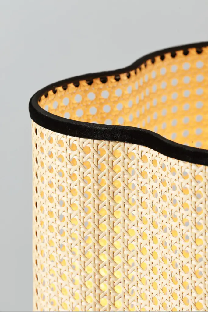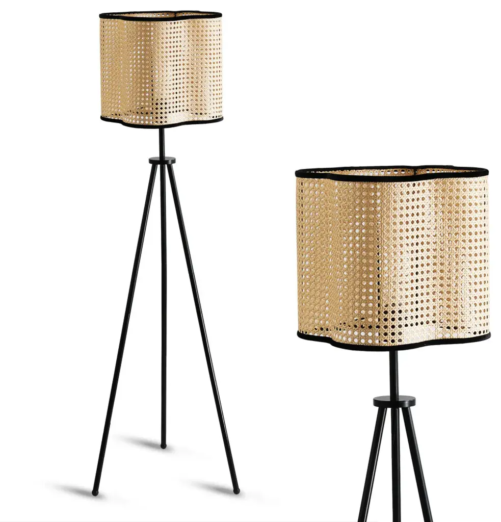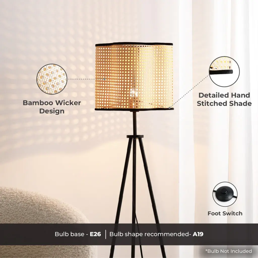 Illuminate your bedroom, living room or home office with this unique rattan and velvet tripod floor lamp. It''s specially crafted from durable Rattan-style PVC with velvet stitched around the outer rim and high-quality iron legs. This light fixture is the perfect addition to modern, bohemian, mid century or transitional style homes. For a warm and inviting look, we recommend using a warm colored or vintage style bulb. Bulb not included.Wattage: 60Bulb type: E26Number of bulbs: 1Bulbs(s) not included