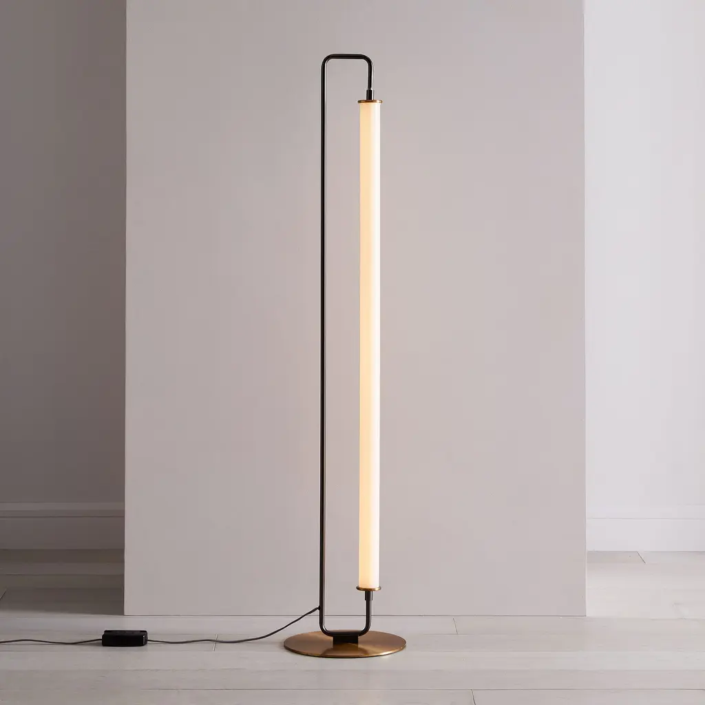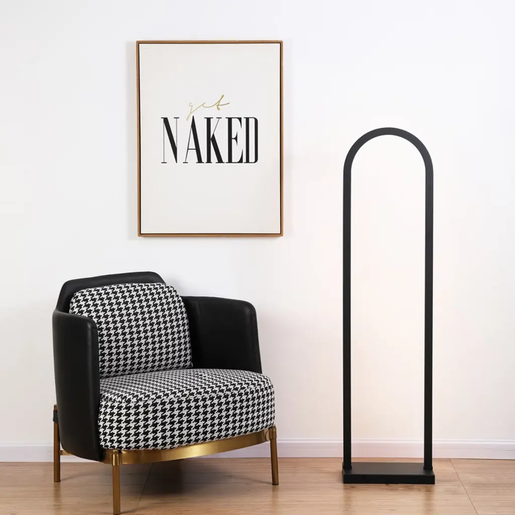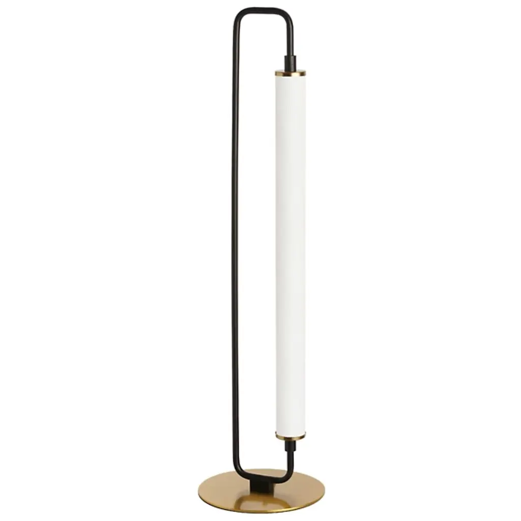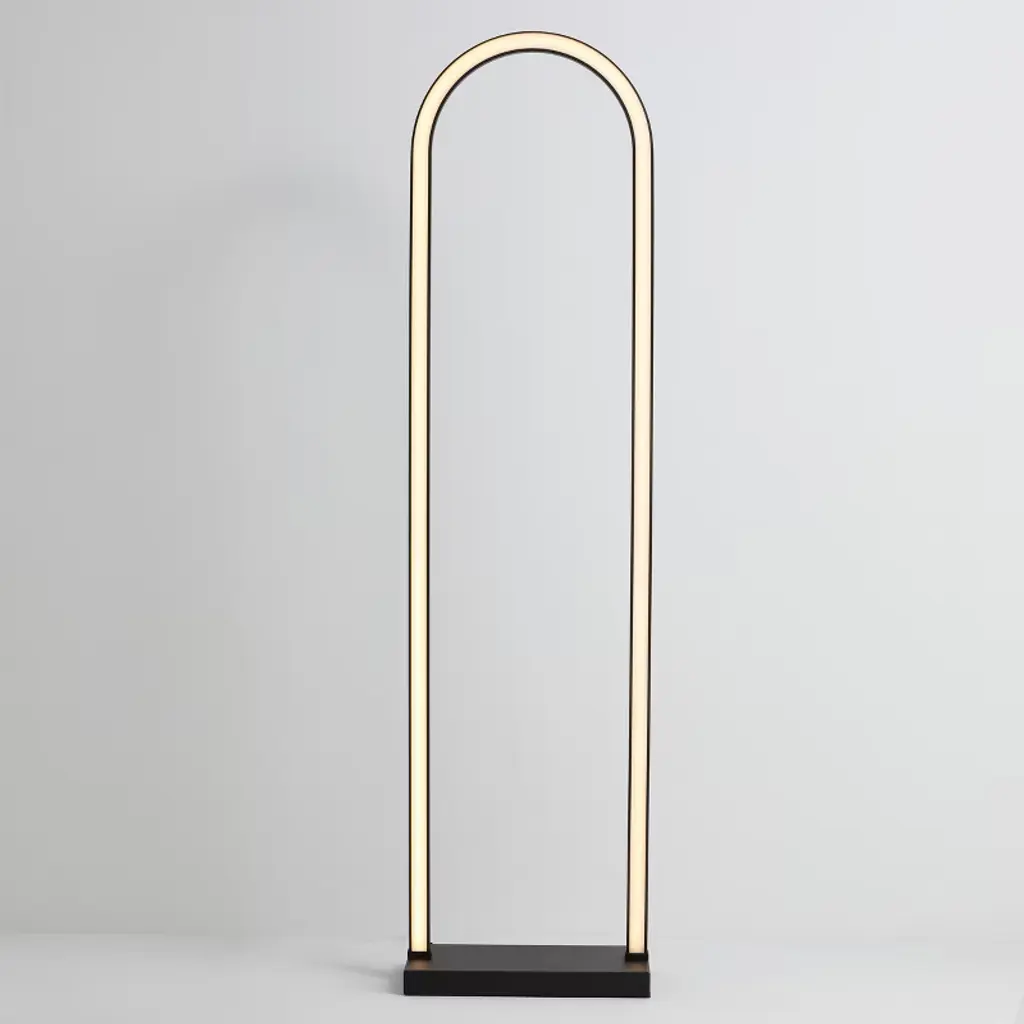 This Vidalite Keshet LED integrated indoor arched floor lamp is the perfect option to illuminate your living room, bedroom, kitchen, dining room or home office. This sleek and modern black floor lamp features an arc design that is sure to impress. It is dimmable, allowing you to set the mood to focus on work or to relax with a movie or reading a book by tapping the foot switch. The LED light is 28W and 3000K making this light bright enough to illuminate a large living space. In addition, LED lights are maintenance free with up to 50,000 hours of runtime and 80% more energy efficient than a traditional light bulb. It stands tall at 54", but keeps a small footprint at 13.8" wide and 13" deep. Your Keshet arc floor lamp includes a 1 year limited warranty.
