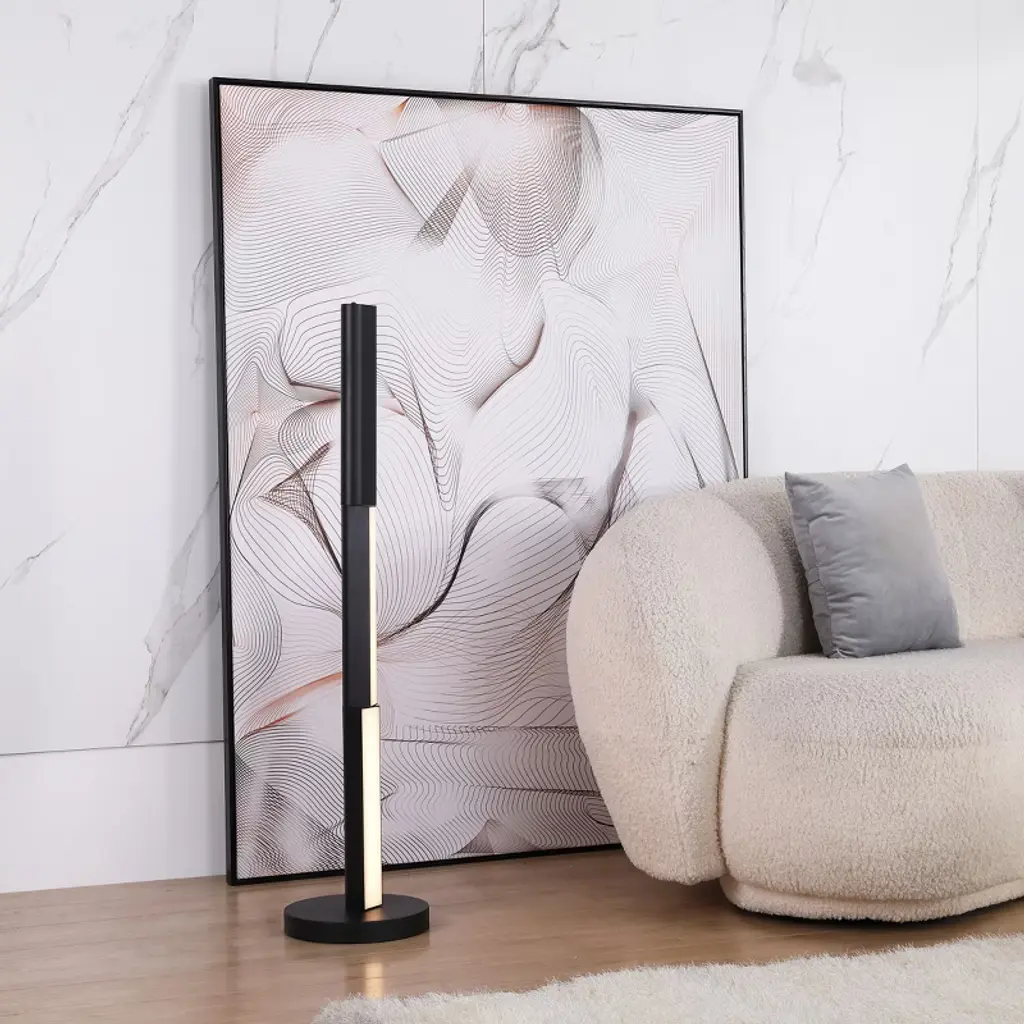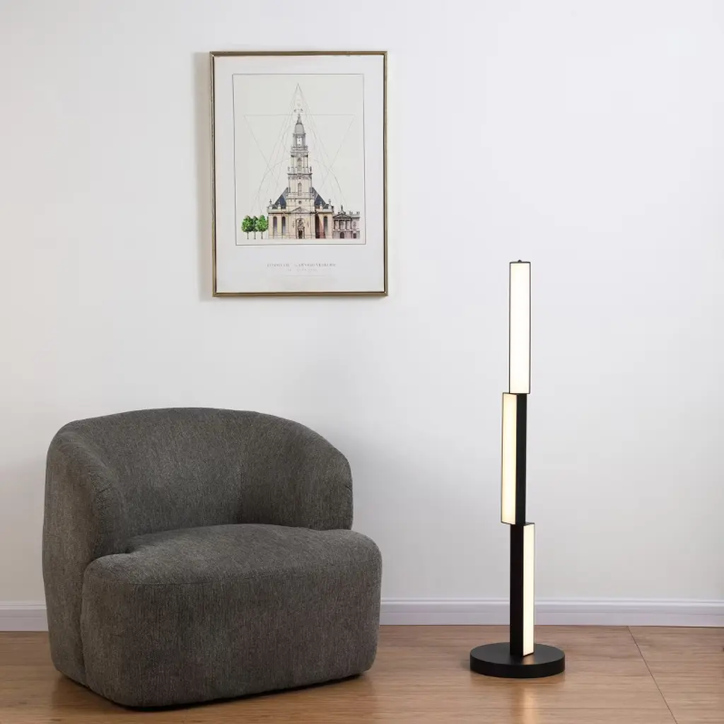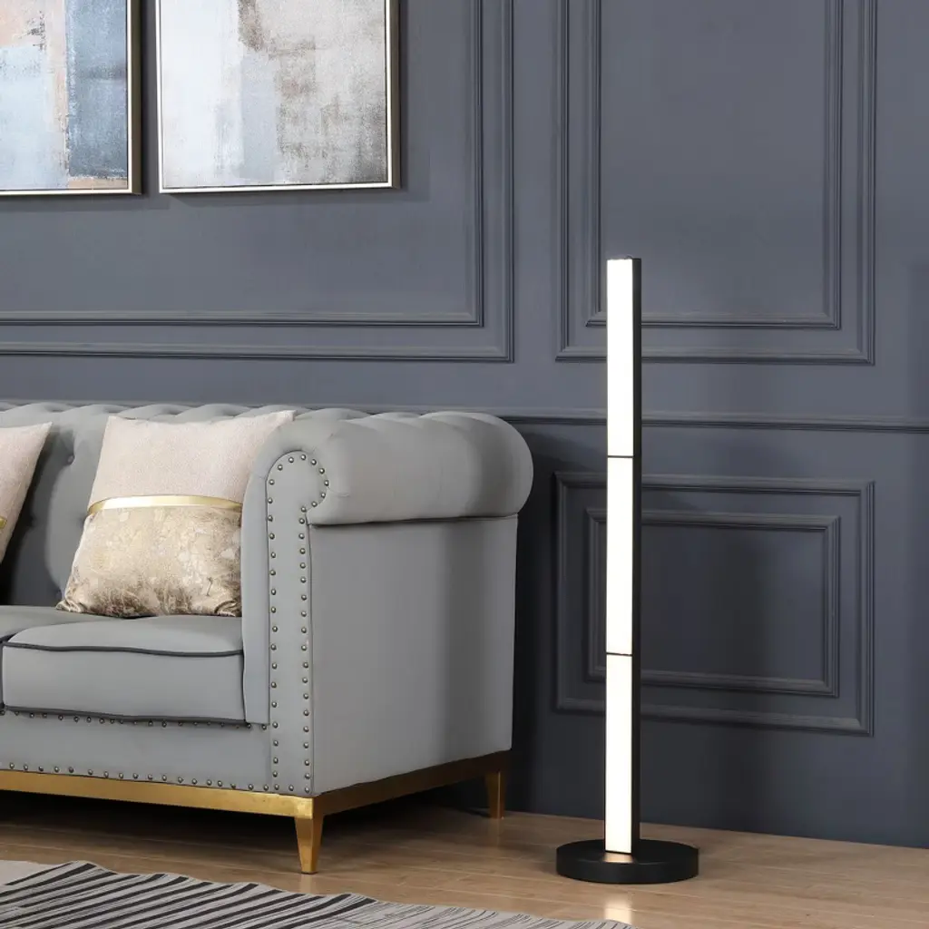 This Vidalite Ma'or LED integrated indoor floor lamp is the perfect option to illuminate your living room, bedroom, kitchen, dining room or home office. This sleek and modern black floor lamp has three lights that can independently rotate in a 360 degree direction, giving you full control of where to direct the lighting. The dimmable switch allows you to set the mood to focus on work or to relax with a movie or book. The LED light is 28W and 3000K making this light bright enough to illuminate a large living space. In addition, LED lights are maintenance free with up to 50,000 hours of runtime and 80% more energy efficient than a traditional light bulb. It stands tall at 44", but keeps a small footprint at 10" deep and 10.24" wide. Your Vidalite floor lamp includes a 1 year limited warranty.