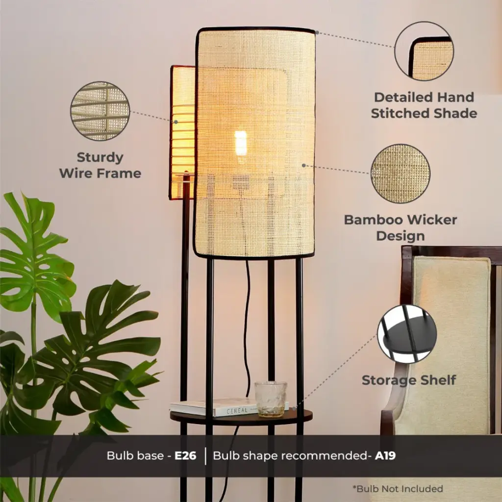 Vidalite Mazal, Boho Bamboo Wicker Floor Lamp