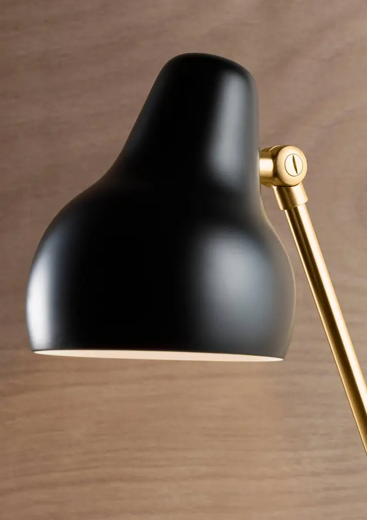 Vilhelm Lauritzen 'VL 38 ' Black Floor Lamp for Louis PoulsenThe 'VL 38' floor lamp was originally designed in the 1930s by Vilhelm Lauritzen in partnership with Louis Poulsen for the construction of the Radiohuset building in Copenhagen, which is now home to the Royal Danish Academy of Music.Re-introduced in 2016 and executed with a die cast aluminum base, spun aluminum shade, and a brushed brass stem, the 'VL38' maintains the retro look and soft curvy design of the original. The 'VL38' casts downward directed light and offers a wide range of adjustment with two lockable joints on the stem.Price is per item. Available in unlimited quantities in choice of black or white powder coated shade. This listing is for the 'VL38' floor lamp with black shade. In-stock lead time 2-3 weeks. Out-of-stock up to 8 weeks or more. Inventory availability subject to change. Please inquire for time sensitive projects.Accommodates a single integrated 9.6 watt 2700k LED with 416 lumen. Ships with 10’ cord with plug. On/off switch provided. Timer function: 4 hours/8 hours. UL listed.Made to order.All sales are final.
