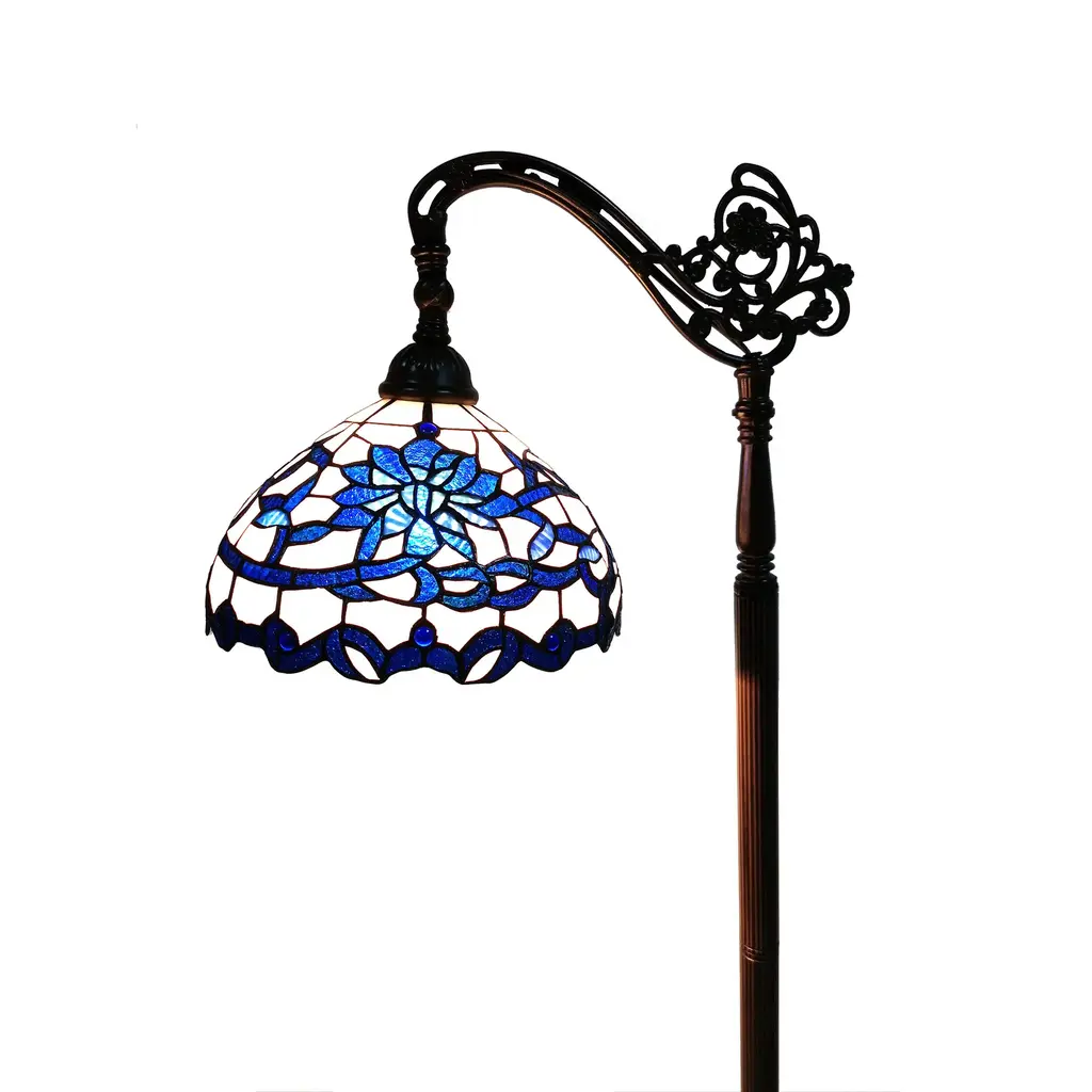 Vinn 11-Inch Blue/white Flower Design Glass/bronze Tiffany-Style Reading Lamp - Blue/white/bronze
