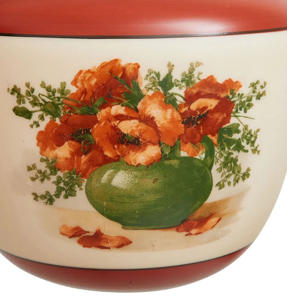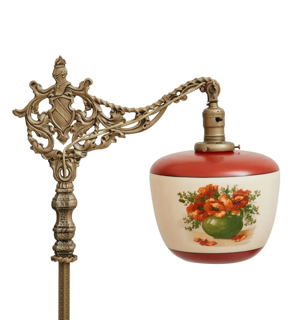 Vintage Cast Arm Floor Lamp With Painted Flowers On Glass Shade