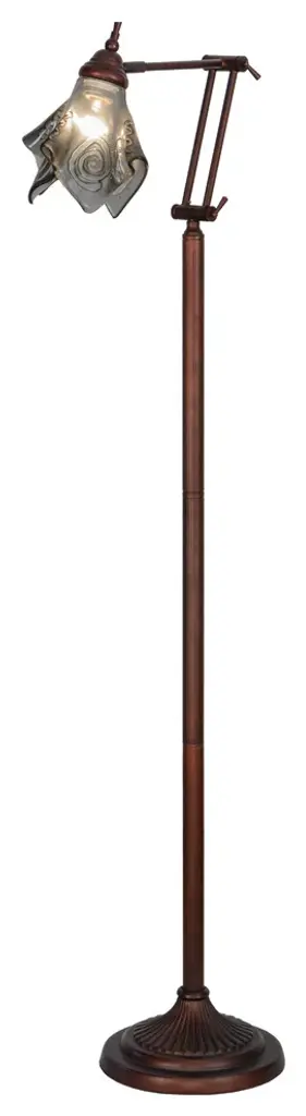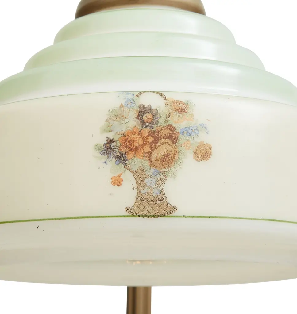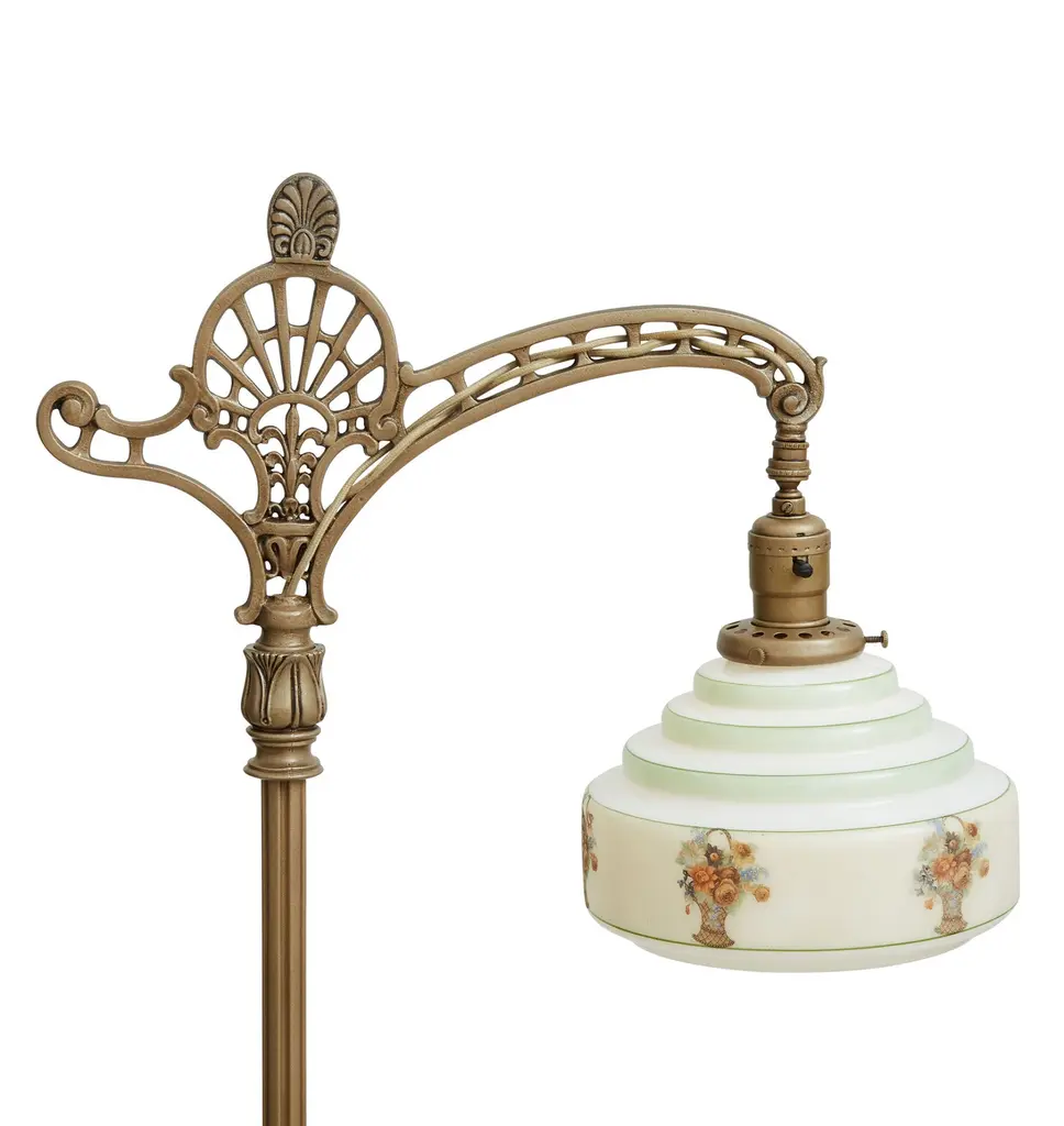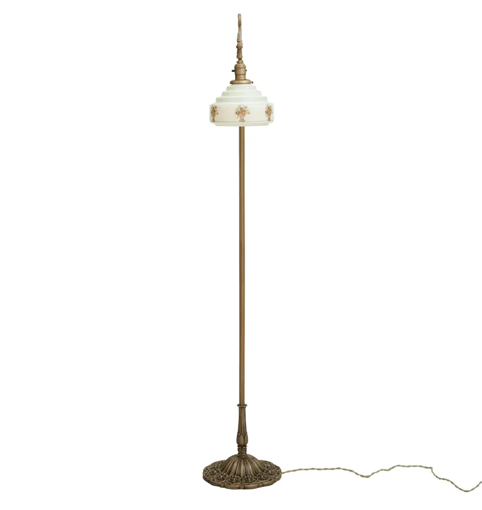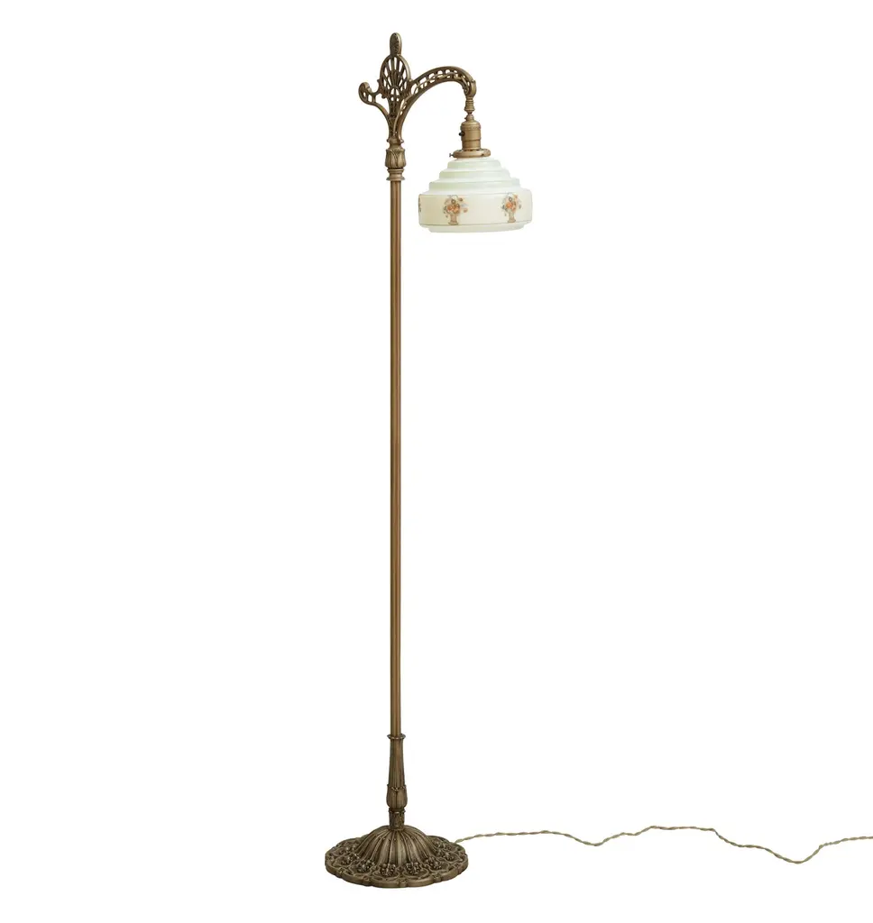 Vintage Cast Arm Floor Lamp With Painted Stepped Glass Shade