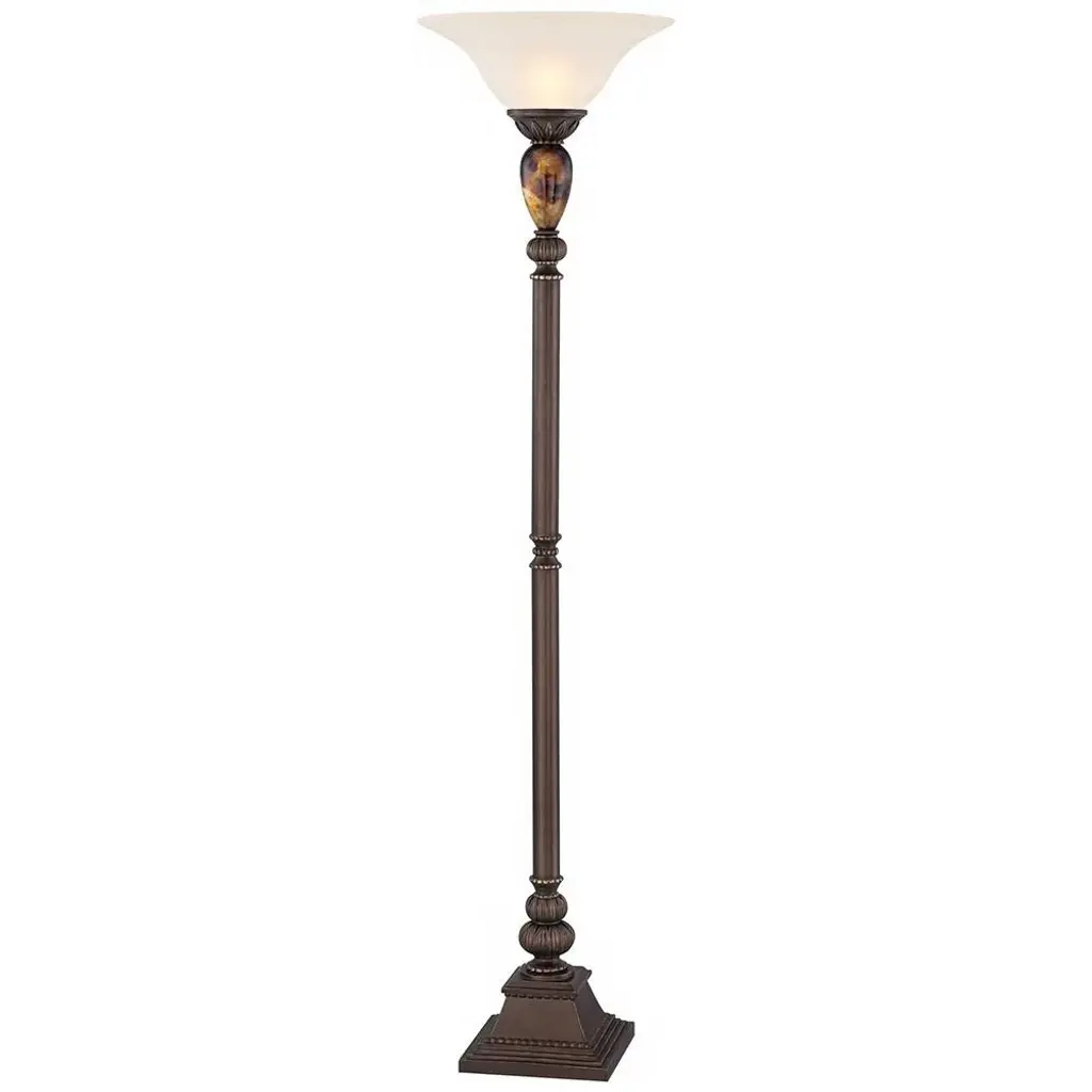 Vintage Torchiere Floor Lamp 72" Tall Bronze Frosted Glass Shade - 18" X 72" - Brown - 18" X 72"