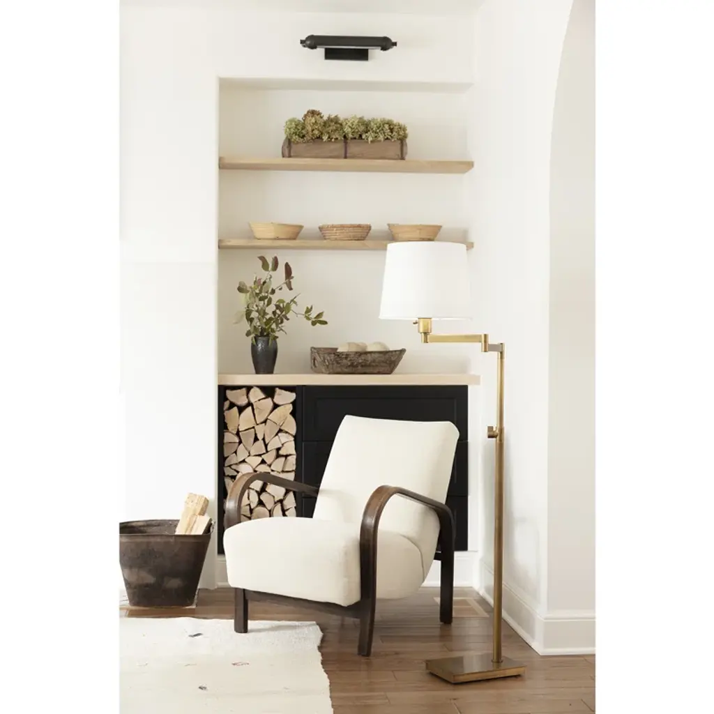 A traditional reading lamp with a modern twist, the Virtue Floor Lamp has the added functionality of adjustability for improved task lighting. Place this beautiful mix of classic and modern decoration in a reading nook, office, or living room.