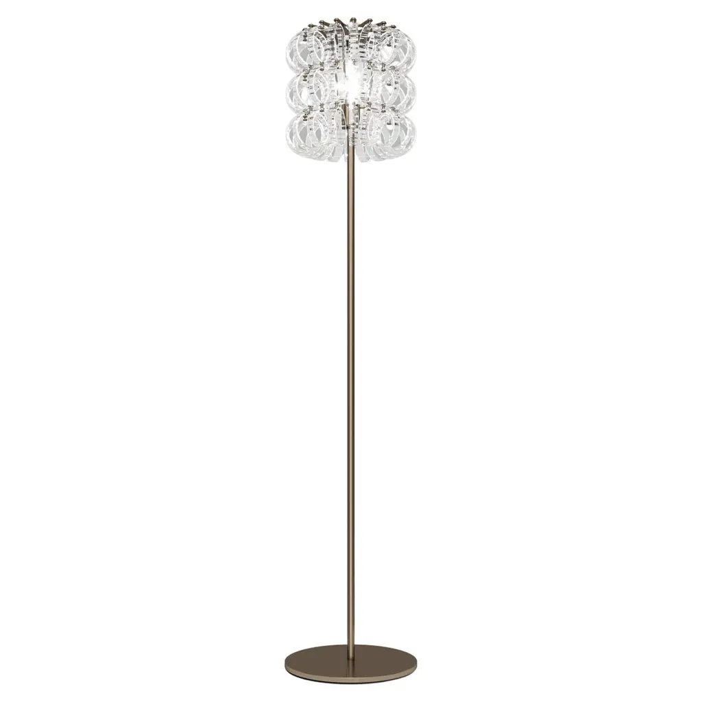 One ring, infinite combinations. The concept of the Ecos collection is just in one element: the glass ring. The chromatic and texture variations that the designers Renato Toso, Noti Massari e Associati have been able to obtain from this simple element are several. That makes the collection extremely customizable in terms of shapes and sizes, for a truly original lighting. Rigadin white or crystal colour glass. Metal parts finishing in satin bronze and chrome.Specifications:Material: Glass, MetalLight source: E26 ULNo of bulbs: 1×60W E26 UL (120V/60HZ)Year: 2007Glass finish: White StripedFrame finish: Matt bronze 2Dimensions: Ø 35 x 190 H cmAvailable in other glass finish option: Crystal StripedAvailable in other frame finish option: Glossy chromePlease inquire about customization options.