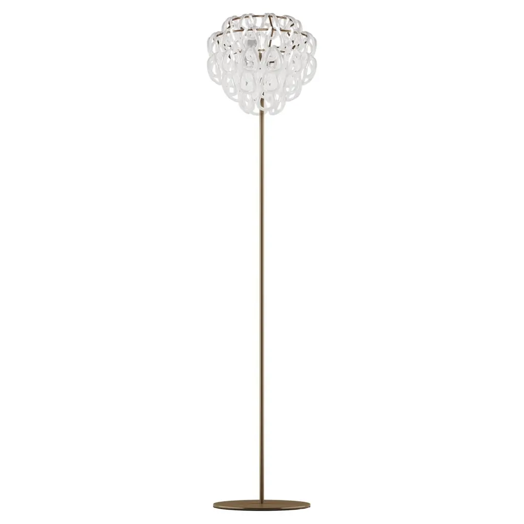 Vistosi Ecos Floor Lamp In White Striped Glass With Matt Bronze Frame