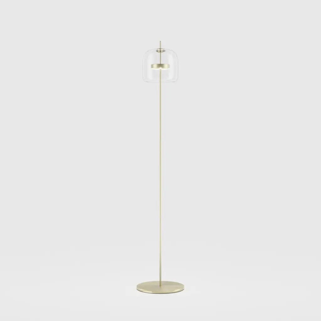 Vistosi Jube Floor Lamp In Crystal Transparent Glass With Matt Gold Finish