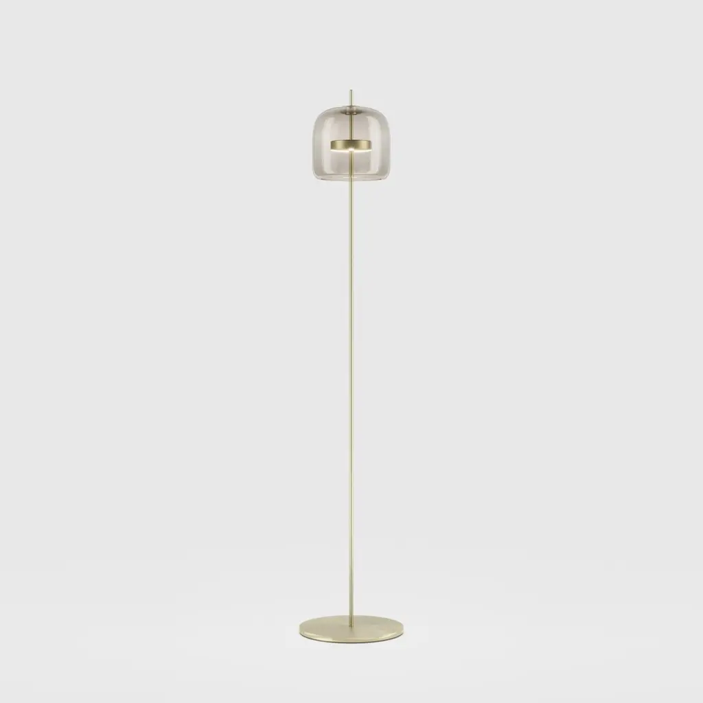 Vistosi Jube Floor Lamp In Smoky Transparent Glass With Matt Gold Finish