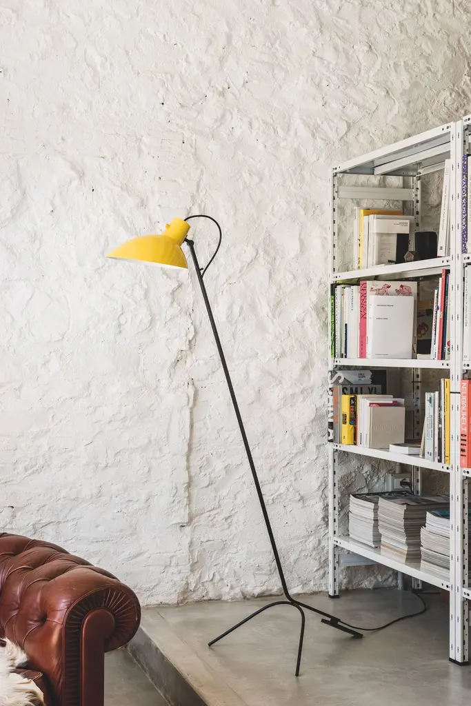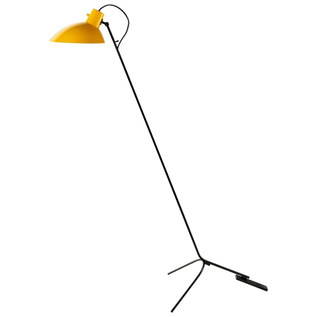 Vittoriano Viganò Special Mondrian Edition 'VV Cinquanta' floor lamp for Astep. Viganò was the art director of Arteluce, the company founded by his creative partner Gino Sarfatti, and the visor was one of his most celebrated designs. This is a professionally rewired authorized re-edition by Alessandro Sarfatti, grandson of Gino Sarfatti, who applies his grandfather's scrupulous attention to detail and materials to offer a tightly curated selection of iconic lighting originally produced by Arteluce. Professionally modified for US electrical; like new, unused in original factory box.Executed in yellow enameled spun aluminum with red and black painted metal, this floor lamp features a sculptural design and easy versatility, with a shade that swivels and tilts to provide a wide range of lighting compositions.Available to order in unlimited quantities in choice of white, red, yellow or black shade. Also available as a special edition 'Mondrian' with yellow shade and red feet - please see our separate listings. This listing is for the Mondrian special edition with a yellow shade, black body and red feet.In-stock lead time 1-2 weeks. Out-of-stock lead time up can add up to an additional 10 weeks or more. Please note that availability and inventory can change at any time and without notice. Please contact us for current lead times prior to placing time-sensitive orders.Accommodates 1x medium base E26 LED bulb with a maximum of 53 Watt Equivalent (bulb not included). Recommended Tala bulbs available separately, please inquire. Not UL listed, but recommended UL listing possible from authorized 3rd party vendor for an additional cost. Please contact us for details.Made to order.All sales final.