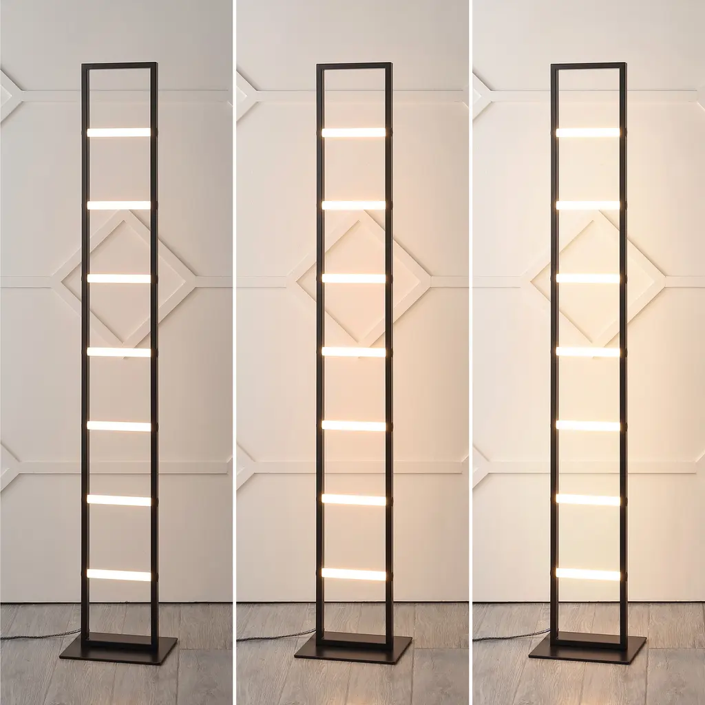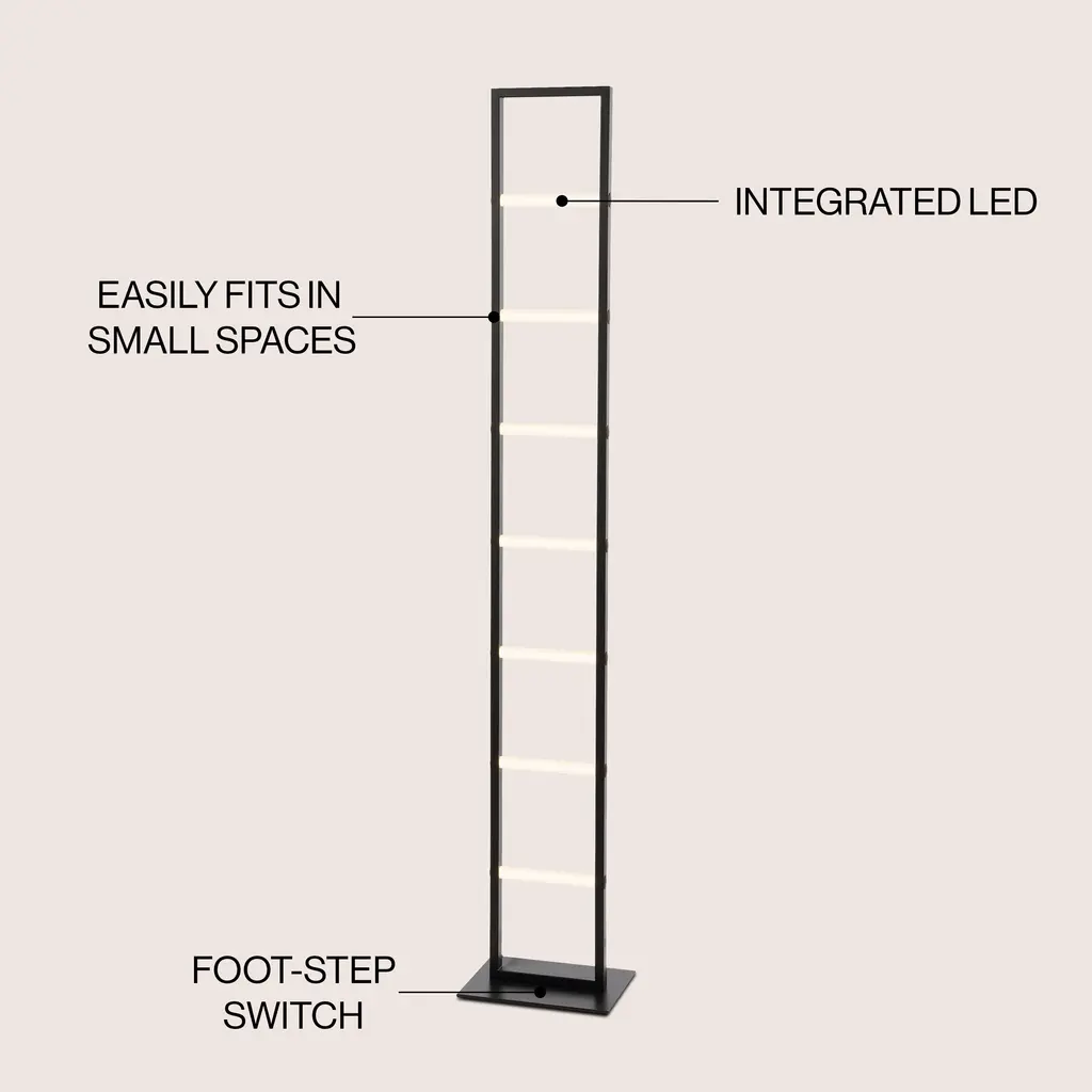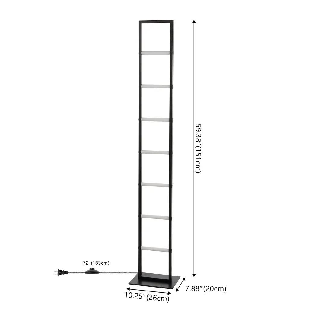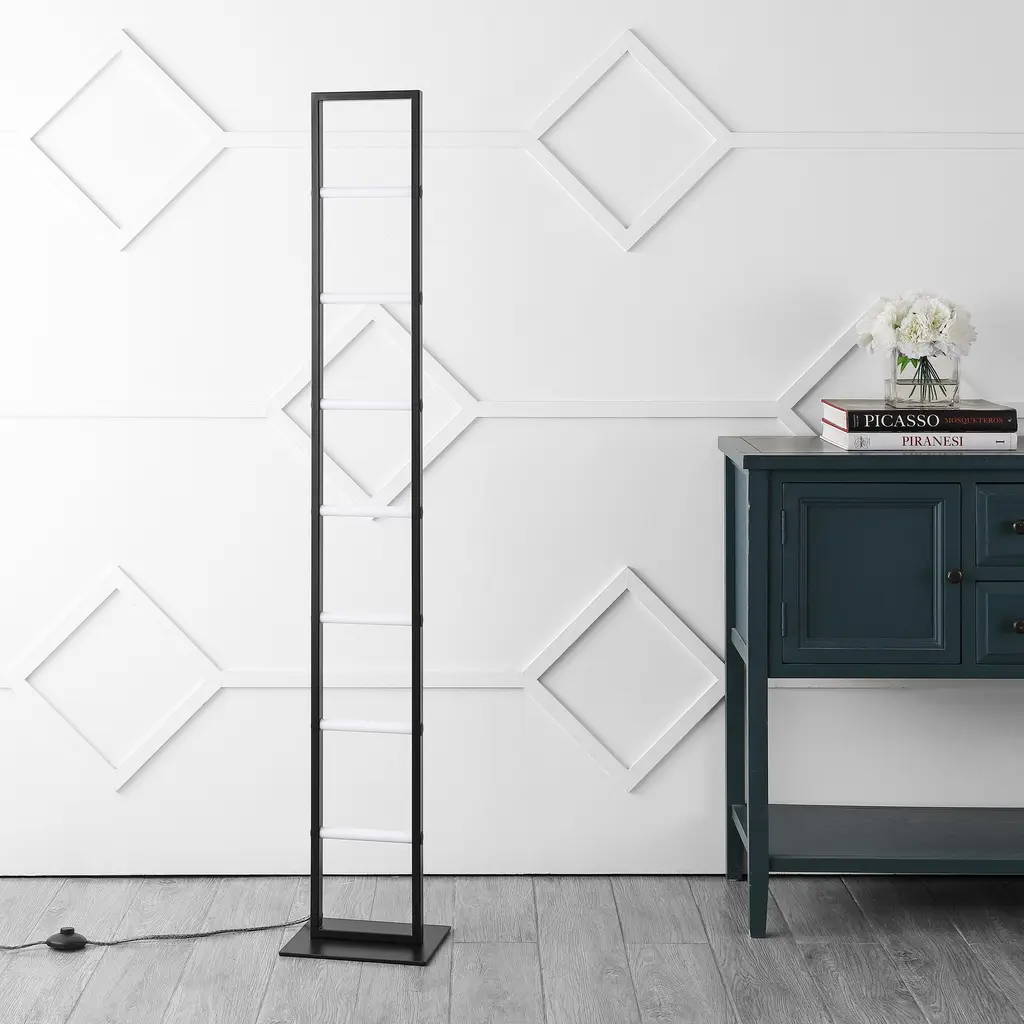 Our modern floor lamp adds contemporary style to a living room, dining room, bedroom or office. This slim lamp's ladder design has crossbars that glow with bright, clear light. Its energy-saving integrated LEDs will last 15 years or more.Features:Dimensions:About us:You see a lamp.We see a decorative work of art.A perfectly curved shade casts a dramatic shadow on a floor. A silk cord you never want to hide. Compatible with LED lightbulbs: as easy on the environment as they are on the eyes. The JONATHAN Y Lighting collection considers every detail from impeccably sourced materials to designer styling. And our prices are so attractive, we've transformed a functional necessity into a fashion accessory.JONATHAN Y Lighting - a fashion revolution in home decor.