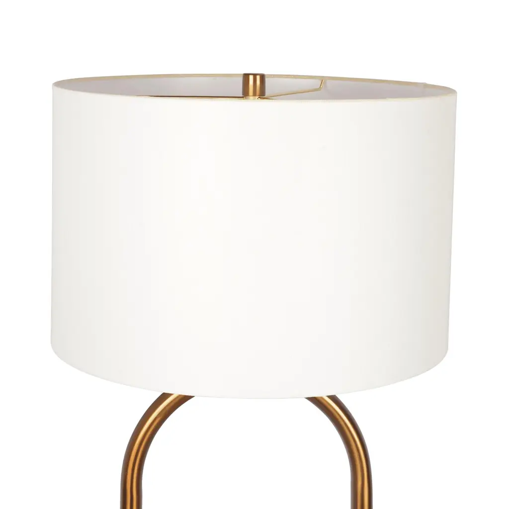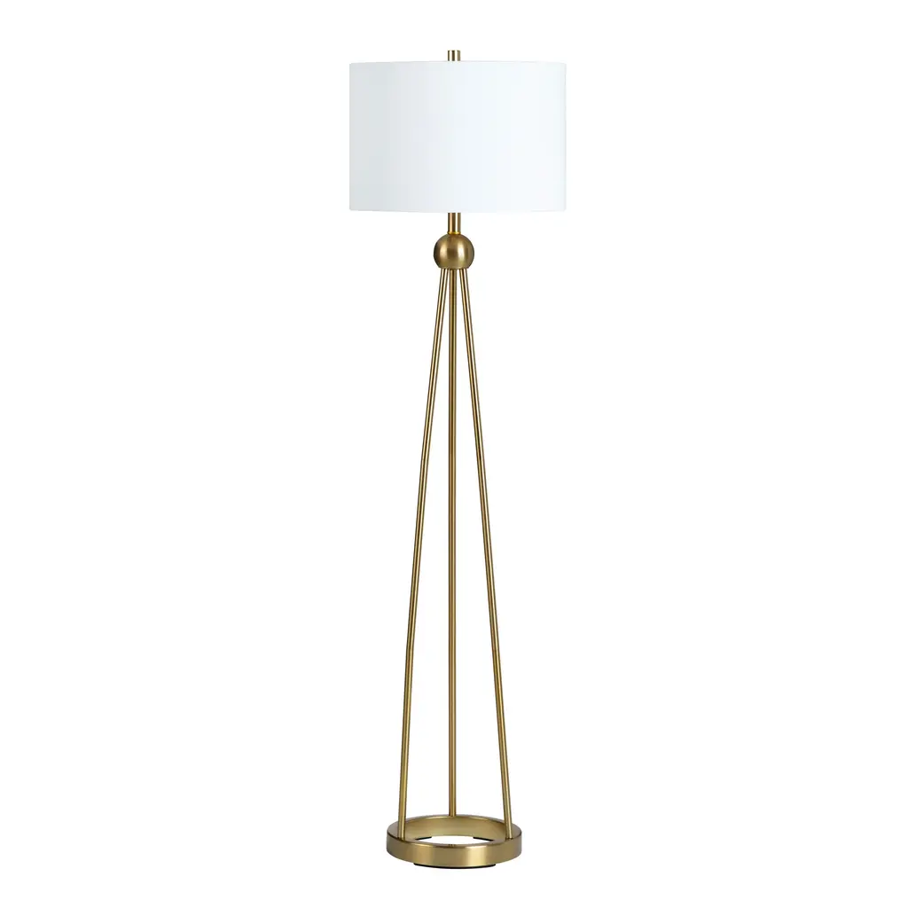 Vivid Brass Ring Base Floor Lamp with Large White Drum ShadeSearching for a standout piece for your living space? Discover our Vivid Brass Ring Base Floor Lamp! The sleek brass design exudes elegance, while the large white drum shade ensures ample lighting for any room.Enhance your home with this striking and functional lamp. Add both elegance and practicality to your living area with our Vivid Brass Ring Base Floor Lamp.The sophisticated brass design paired with a spacious white drum shade creates a statement in any room. Elevate your home decor with this eye-catching and versatile lamp.
