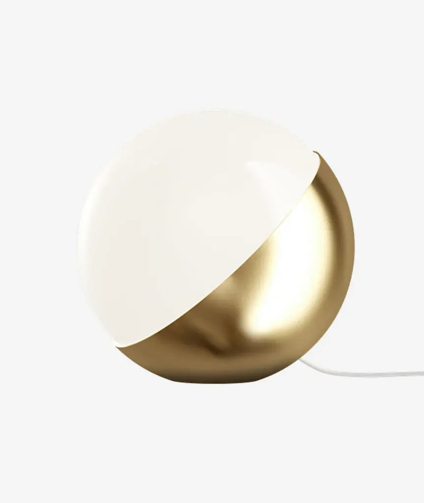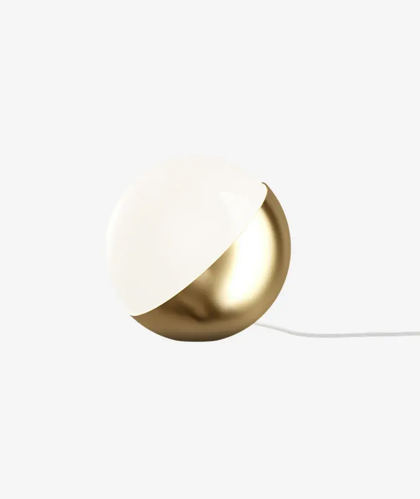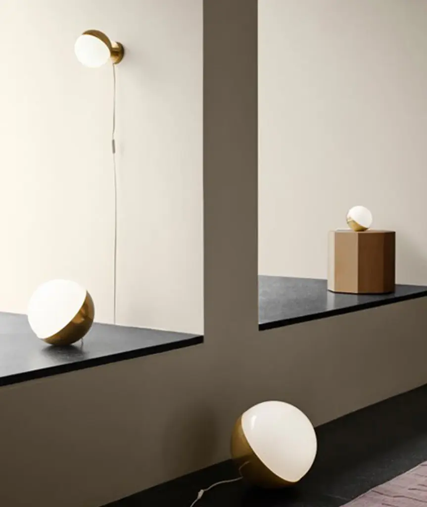 This VL Studio family derives from a lamp designed by architect Vilhelm Lauritzen for Radiohuset (The Radio House, headquarters of the Danish Broadcasting Corporation) in Copenhagen in the 1940s. The name "Studio" was chosen because some of the lamps were used outside the studio to indicate—with either a red or green light—whether the recording was taking place. Lauritzen was the architect behind Radiohuset, a functionalist design, which was inaugurated in 1945. Radiohuset is a "gesamtkunstwerk"—like most of Lauritzen’s buildings—meaning that he designed all of the interiors and every detail of the building. When developing Radiohuset, Lauritzen designed a broad collection of lamps in close collaboration with Louis Poulsen. For this project, Lauritzen created the Studio lamp, the VL 38 Table lamp (VL38), the Radiohus Pendant (VL45), and the VL Ring Crown lamps. After the creation of the lamps in the 1940s, they were produced by Louis Poulsen. However, over the years, they were all taken out of production. The VL45 (Radiohus Pendant) and the VL38 (Table lamp originally from the interior of the building) were reintroduced in 2016, the VL Ring Crown was reintroduced in 2019, and the VL Studio lamp in 2022. The VL Studio lamp is closely related to the Radiohus Pendant. Both lamps create a diffused light through opaline glass, which provides a pleasant general light around the lamp. Based on the design and materials of the lamp head from the original wall lamp, the VL Studio Table/Floor lamp was introduced in 2022. It is made of polished brass that has been slightly brushed with glossy white, triple-layered, mouth-blown opal glass. The VL Studio Table/Floor lamp also comes in a matte-black version for a more clean and graphic expression compared to the soft, warm look of the polished brass version. The table lamp series is available in three sizes that can be positioned as floor lamps or as table lamps, as required. The smallest size has the same 150 mm diameter as the original VL Studio Wall lamp, and it can easily be placed anywhere. The middle size with a diameter of 250 mm is perfect as a table lamp, and the larger version with a 320 mm diameter is ideal for both table and floor use. With its simple aesthetic and exquisite materials, the VL Studio Table/Floor lamp brings a modern touch and warm ambiance to any interior. This fixture emits a diffused, glare-free light. The triple-layered opal glass provides a comfortable light distribution and radiates a pleasantly delicate glow to its surroundings.