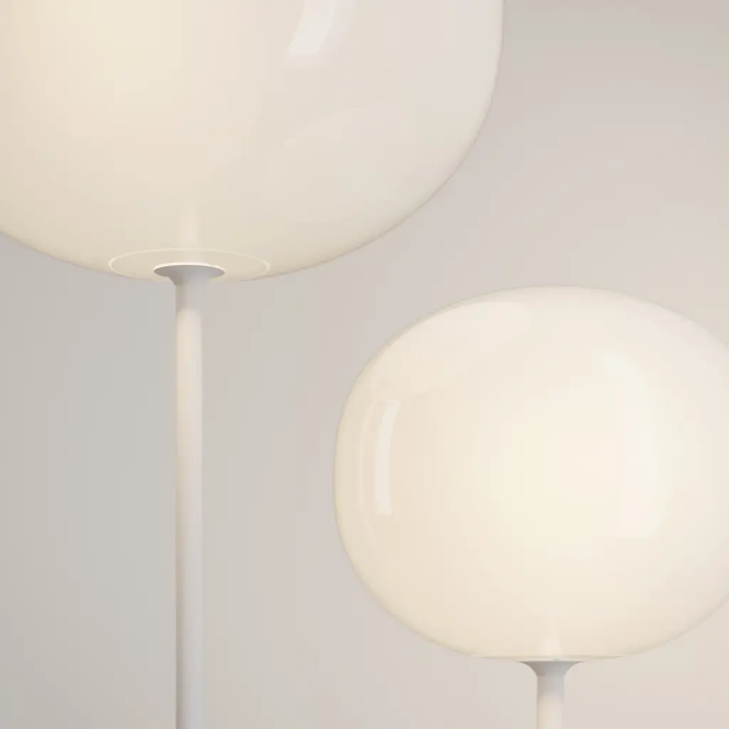 The Volum Floor Lamp from Lodes is a tribute to the ancient technique of glassblowing, resulting in naturally imperfect, unique shapes. The glossy white finish of the diffuser spheres radiates a warm and soft light, showcasing the beauty of glass and its craftsmanship. With two pole heights and glass sizes, create four different configurations to suit varying needs. Illuminate your living space with elegance and exclusivity. Highlights