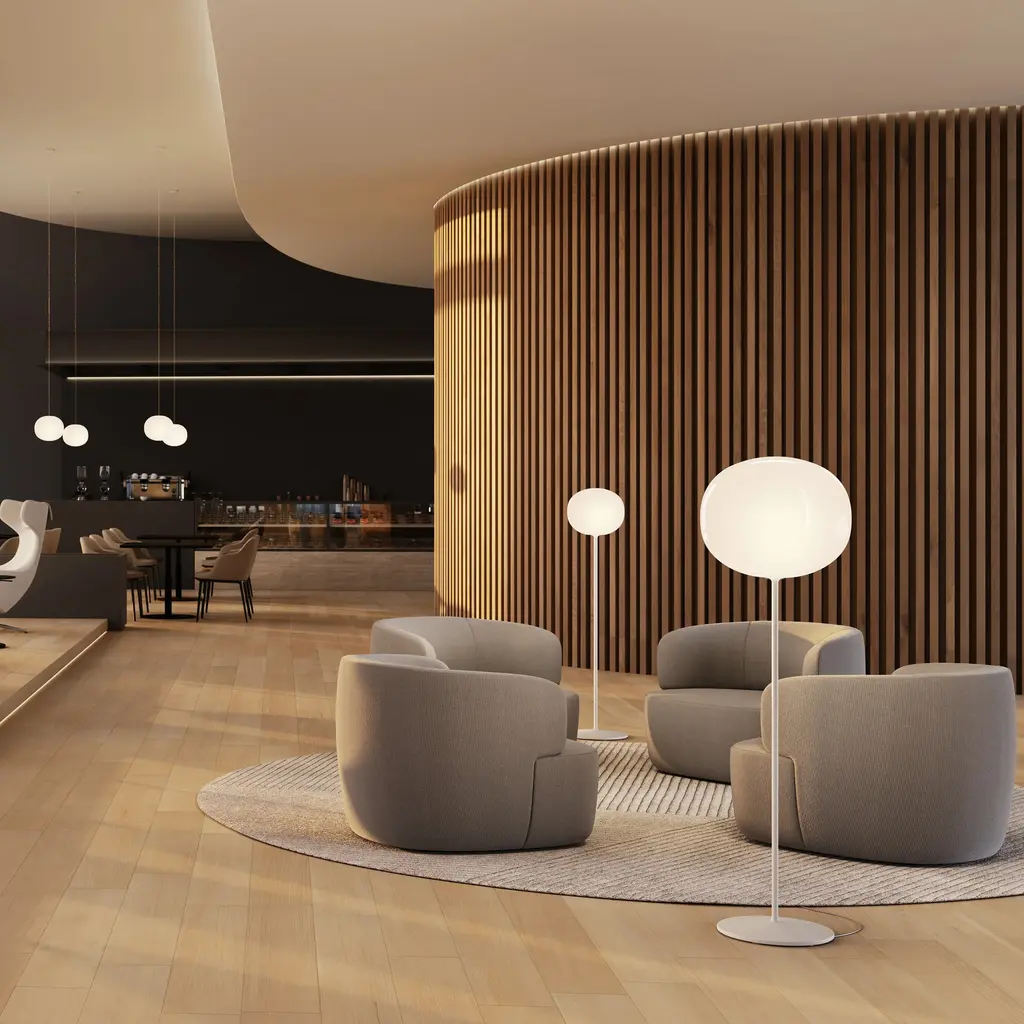 The Volum Floor Lamp from Lodes is a tribute to the ancient technique of glassblowing, resulting in naturally imperfect, unique shapes. The glossy white finish of the diffuser spheres radiates a warm and soft light, showcasing the beauty of glass and its craftsmanship. With two pole heights and glass sizes, create four different configurations to suit varying needs. Illuminate your living space with elegance and exclusivity. Highlights