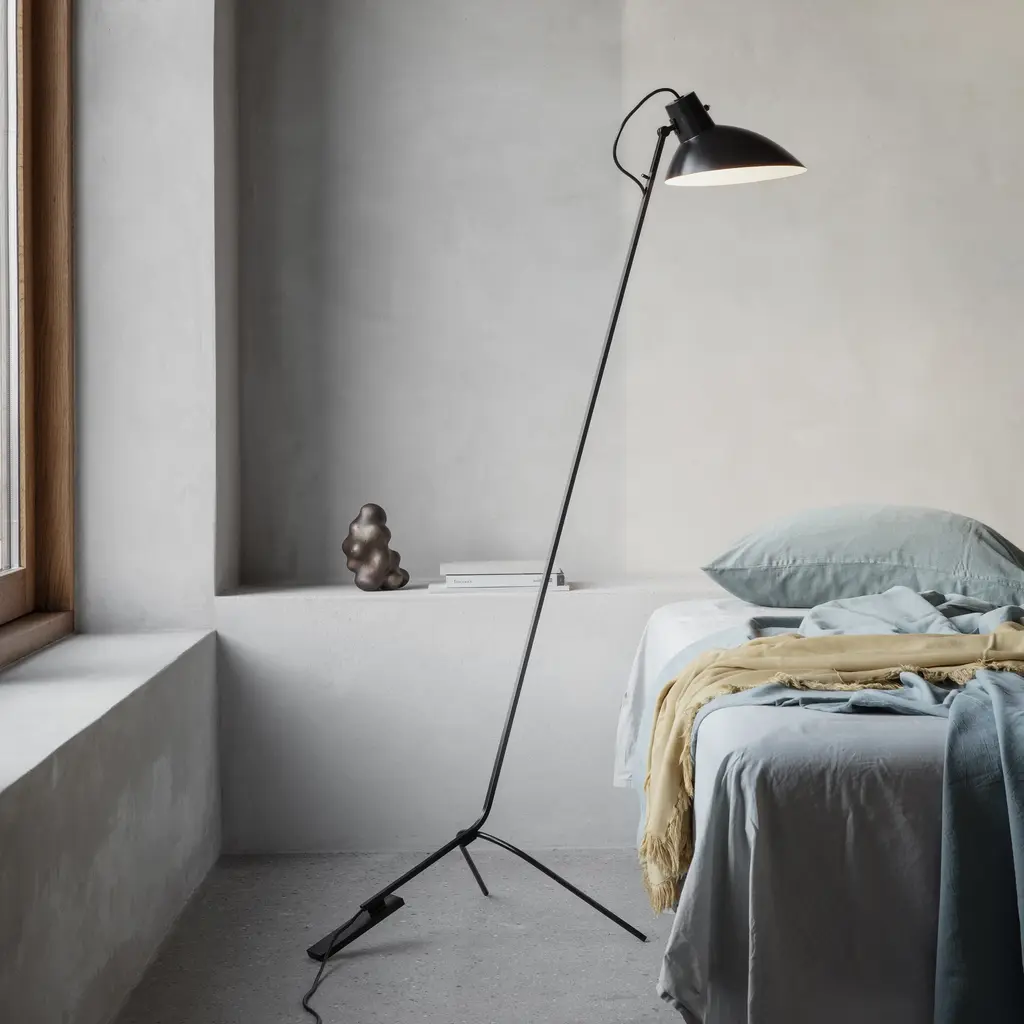 Elevate any indoor space with the timeless elegance of the VV Cinquanta Floor Lamp from Astep. Inspired by the vision of renowned designer Vittorano Vigano, this retro-modern piece features a unique tripod base and a posable shade for customizable lighting. Its simple yet sophisticated design creates a warm and inviting atmosphere, making it a must-have for any gathering space. Highlights